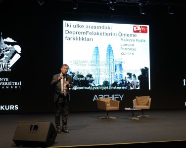 Prof. Dr. Tanyeli, günümüzde devamlı bir dönüşüm halinde olan ekolojik ve sosyolojik koşulların toplumsal mimariye etkisini vurguladı. Depremin kaçınılmaz etkilerine değinen Tanyeli, deprem benzeri krizlerin toplumsal sonuçlarına şu sözlerle dikkat çekti: "Günümüz mimarisi, sürekli bir toplumsal dönüşümün sorumluluğunu beraberinde getiriyor. Günümüzün mimarları, yalnızca birer birey değil, sağlıklı ve güvenli bir toplumun paydaşları olarak çalışmalıdır."