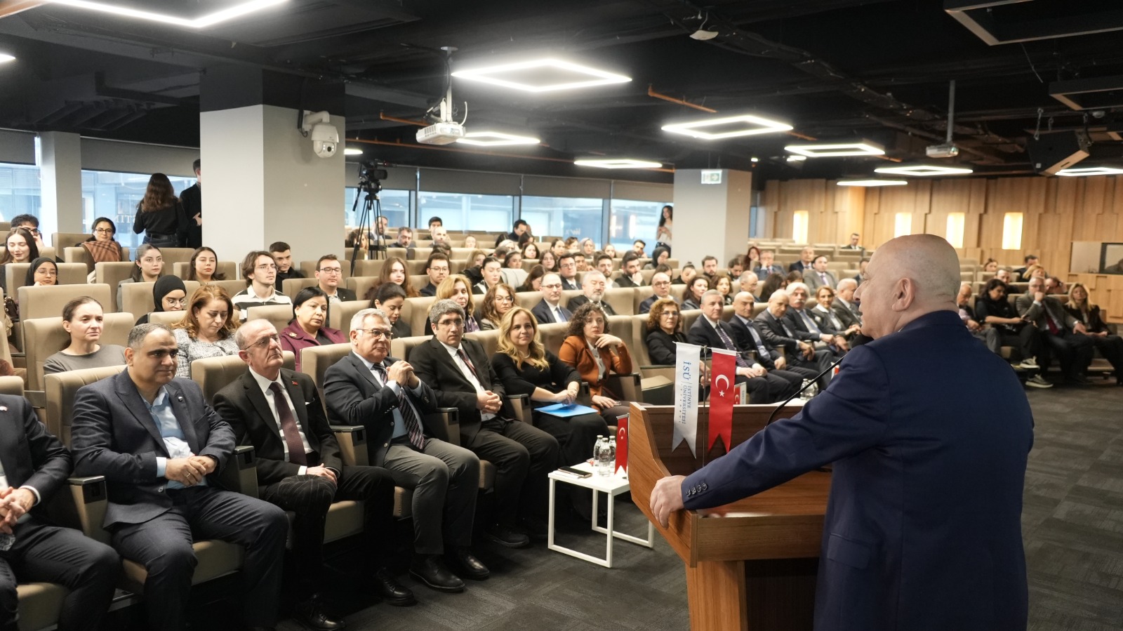 Açılışta söz alan İstanbul Kalkınma Ajansı İzleme ve Değerlendirme Birimi Başkan Vekili Gökhan Çoban’ın ardından konuşan Rektörümüz Prof. Dr. Erkan İbiş ise günümüz dünyasında dönüşüm kavramının belirleyici rolüne dikkat çekti. Prof. Dr. İbiş konuşmasında, “Günümüzde kavramlar, konseptler ve algılar hızla değişiyor. Yeni çağın en önemli kavramı dönüşüm. Bu dönüşüme ayak uydurabilenler başarıya ulaşabiliyor. Değişen koşullar ve dinamikler karşısında özellikle dijital teknolojilere yönelik farkındalığı artırmak ve bu dönüşüme entegre olmak büyük önem taşıyor” ifadelerini kullandı.