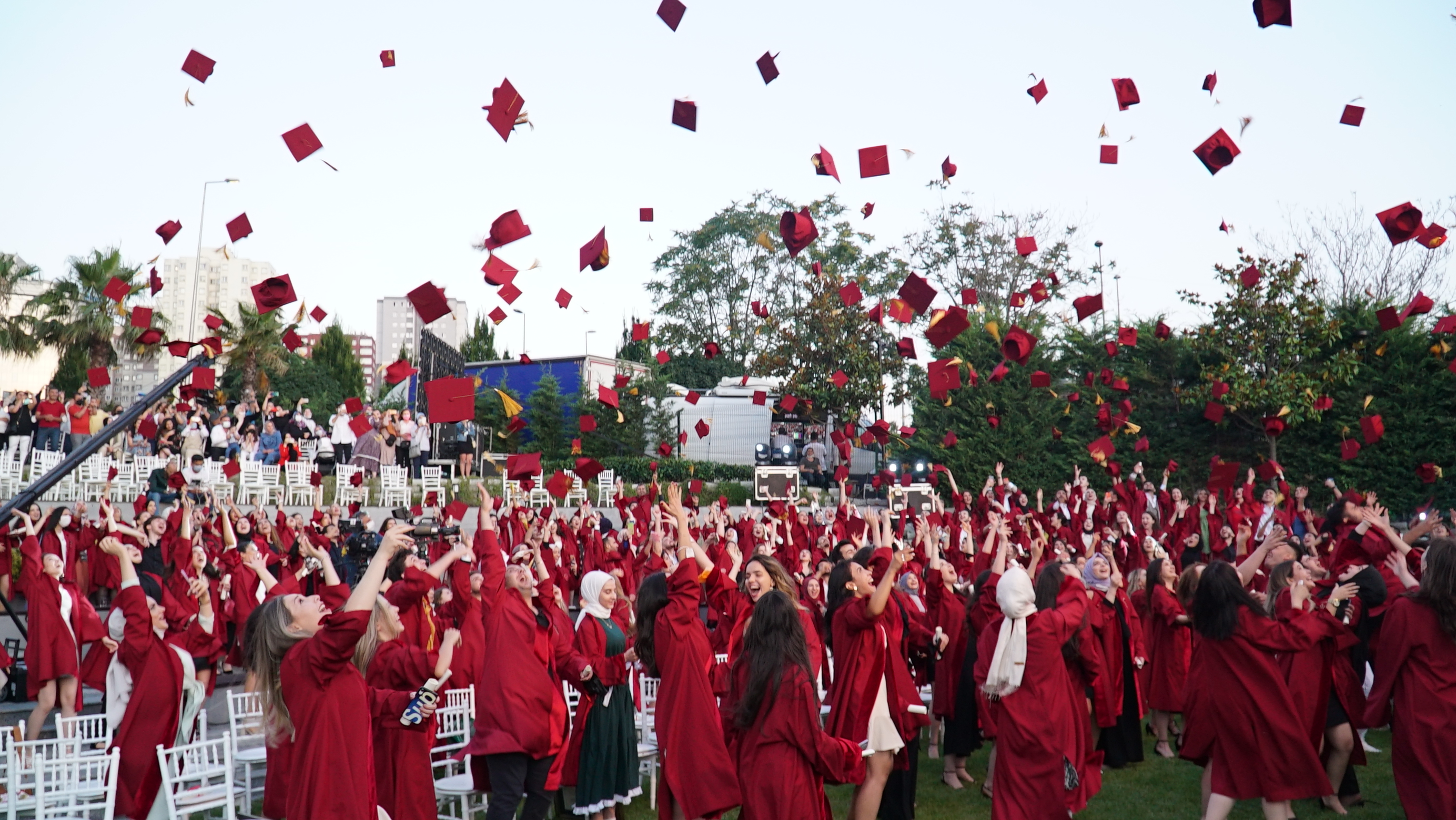 Covid19 salgını tedbirleri nedeniyle 2021 yılına ertelenmek durumunda kalan 2020 mezuniyet töreninde; İstinye Üniversitesi Mütevelli Heyeti başkanı Dr. Muharrem Usta ve İstinye Üniversitesi Rektörü Prof. Dr. Erdal Karaöz konuşma gerçekleşti.  Büyük bir coşkuyla geçen İstinye Üniversitesi 2020 Mezuniyet Töreni; mezun olan öğrencilerin kep atmalarıyla tamamlandı.