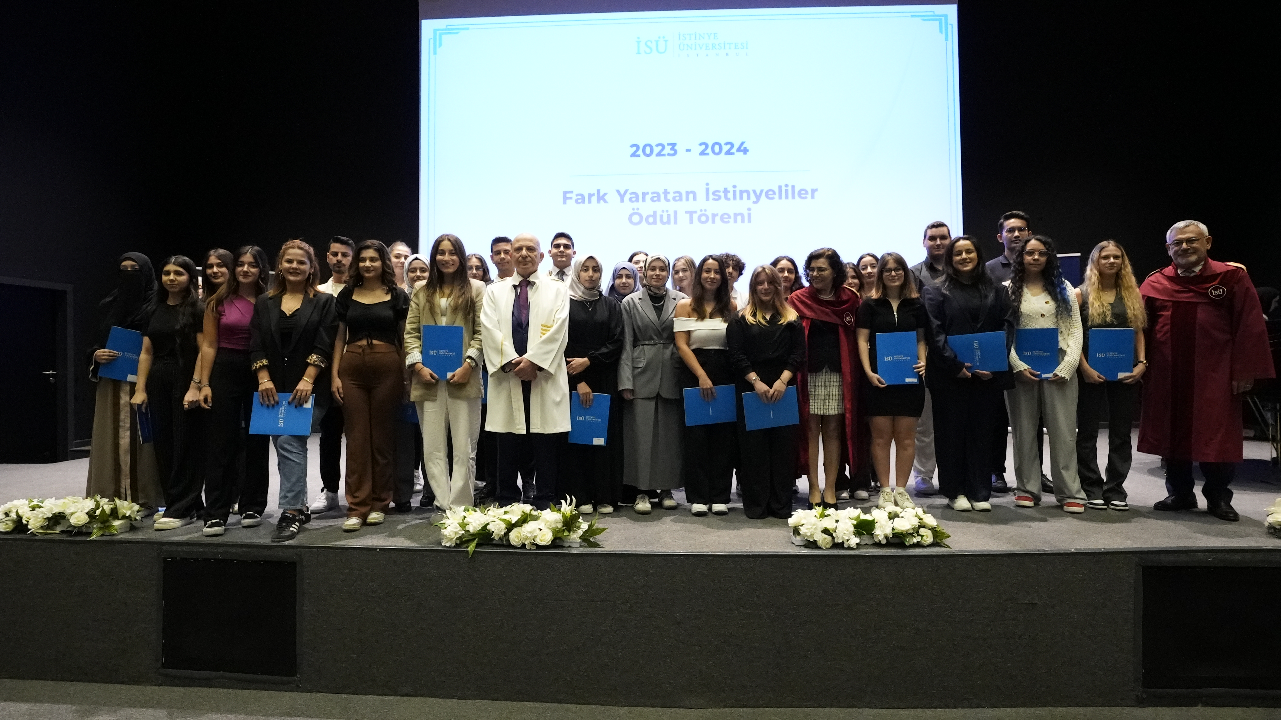 sahnede, sahada, bahçede, sanal dünyada, akademik ve idari üyeleri ile öğrencilerinin birlikte çalıştığı, birbirini desteklediği ve beraber harika işler başardığı yer olmayı hedefliyor. Yaşama dokunan olağanüstü işler başarmak isteyenlerin adresi olma amacıyla çalışmalarını sürdüren İstinye Üniversitesi, bu amaca katkı sunanları “Fark Yaratan İstinyeliler” projesi kapsamında ödüllendiriyor. 2024-2025 akademik yılı açılış programı, “2023-2024 Akademik Yılı Fark Yaratan İstinyeliler Ödül Töreni” ile fark yaratan İstinyelilere ödüllerinin takdim edilmesinin ardından sona erdi.