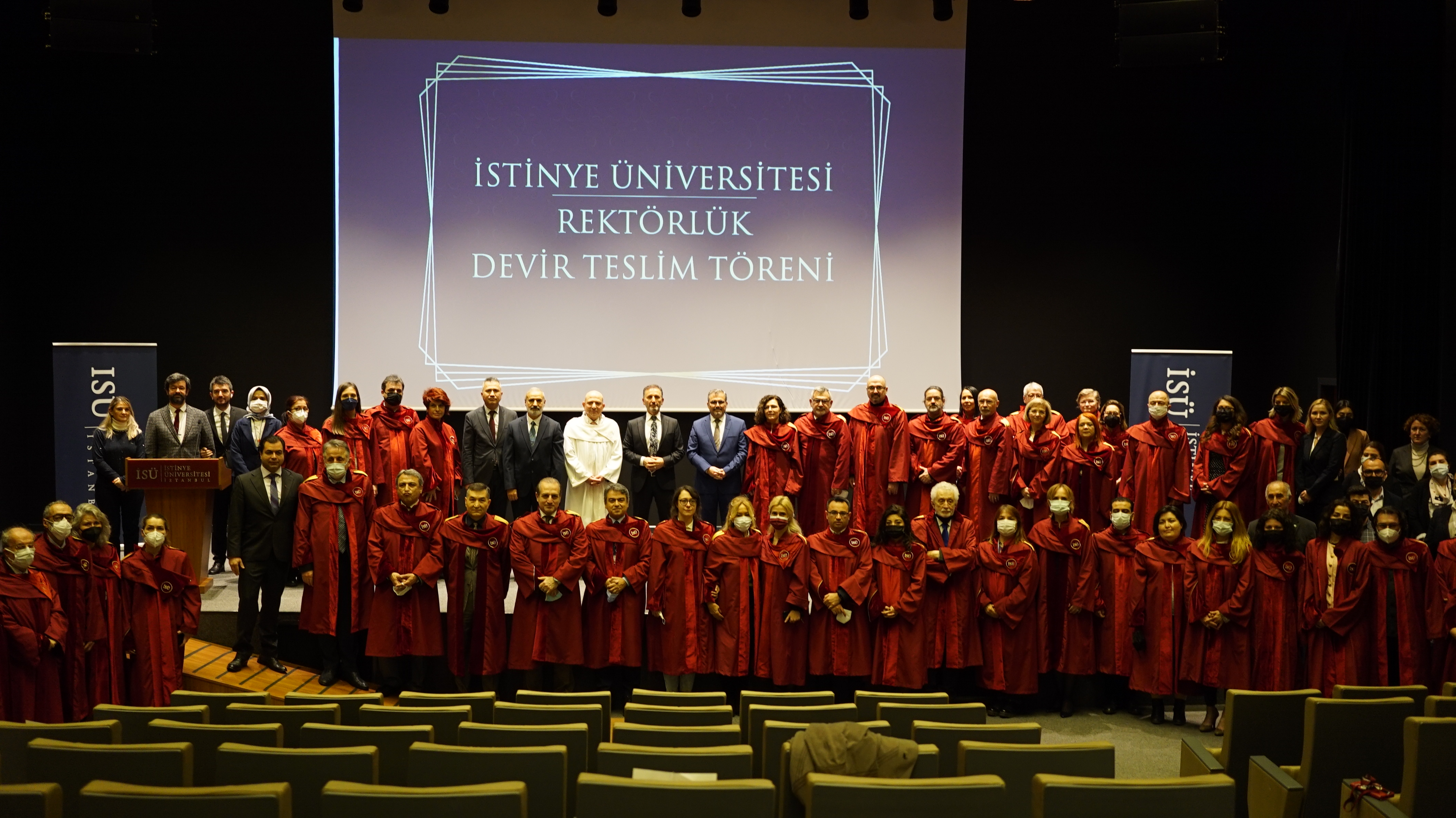 İstinye Üniversitesi akademik ve idari yöneticilerinin katıldığı Rektörlük Devir Teslim Töreni’nde; Mütevelli Heyet Başkanı Dr. Muharrem Usta tarafından Prof. Dr. Erdal Karaöz’e teşekkür plaketi sunuldu. Ardından Prof. Dr. Erdal Karaöz, Rektörlük cübbesini Prof. Dr. Erkan İbiş’e takdim etti ve başarılar diledi.