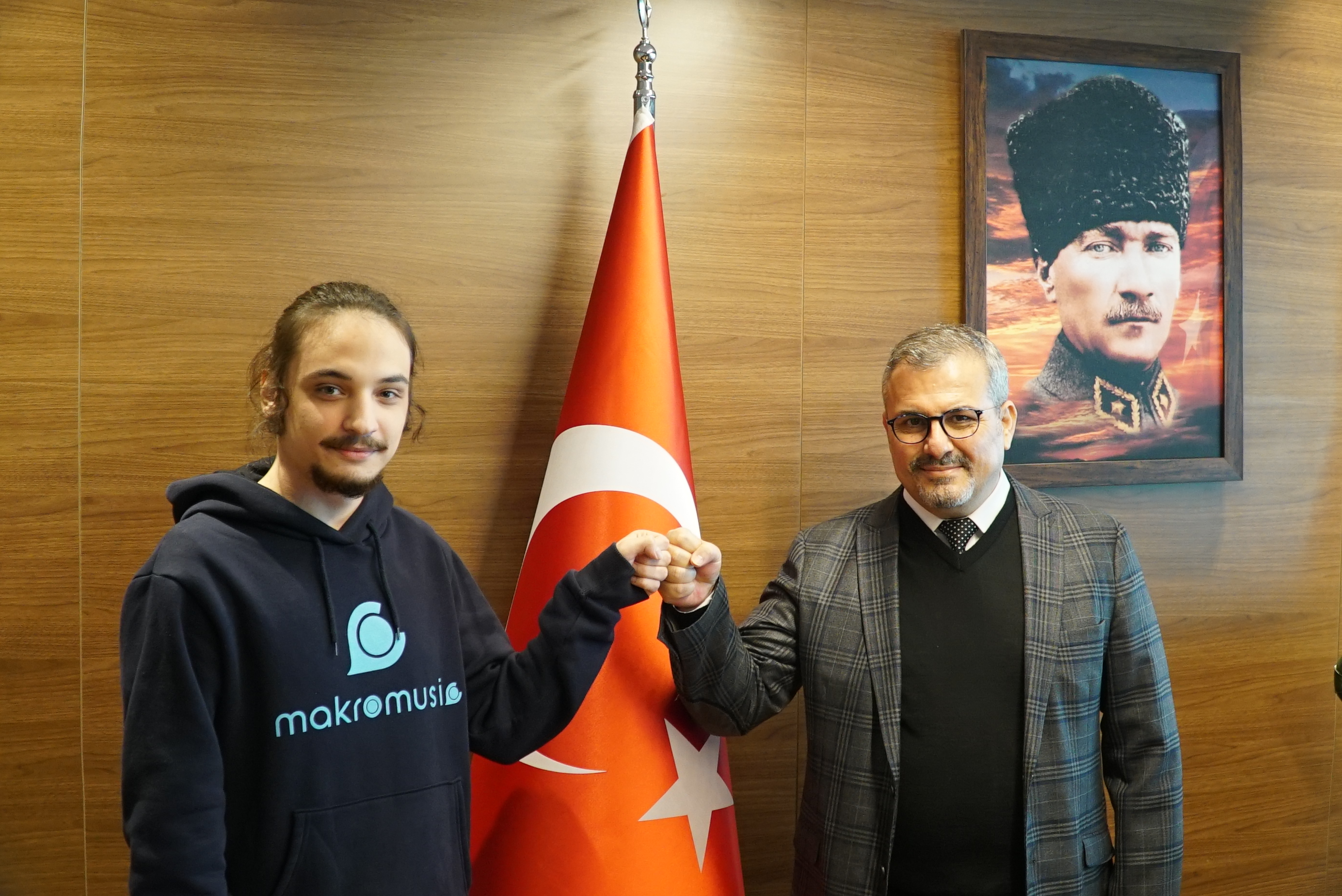 Ataberk Özaydın ile İstinye Üniversitesi Topkapı Kampüsü'nde bir araya gelen ve makromusic uygulamasının ortaya çıkış serüvenini öğrencimizden dinleyen Rektörümüz Prof. Dr. Erdal Karaöz, genç girişimciye başarılar diledi.