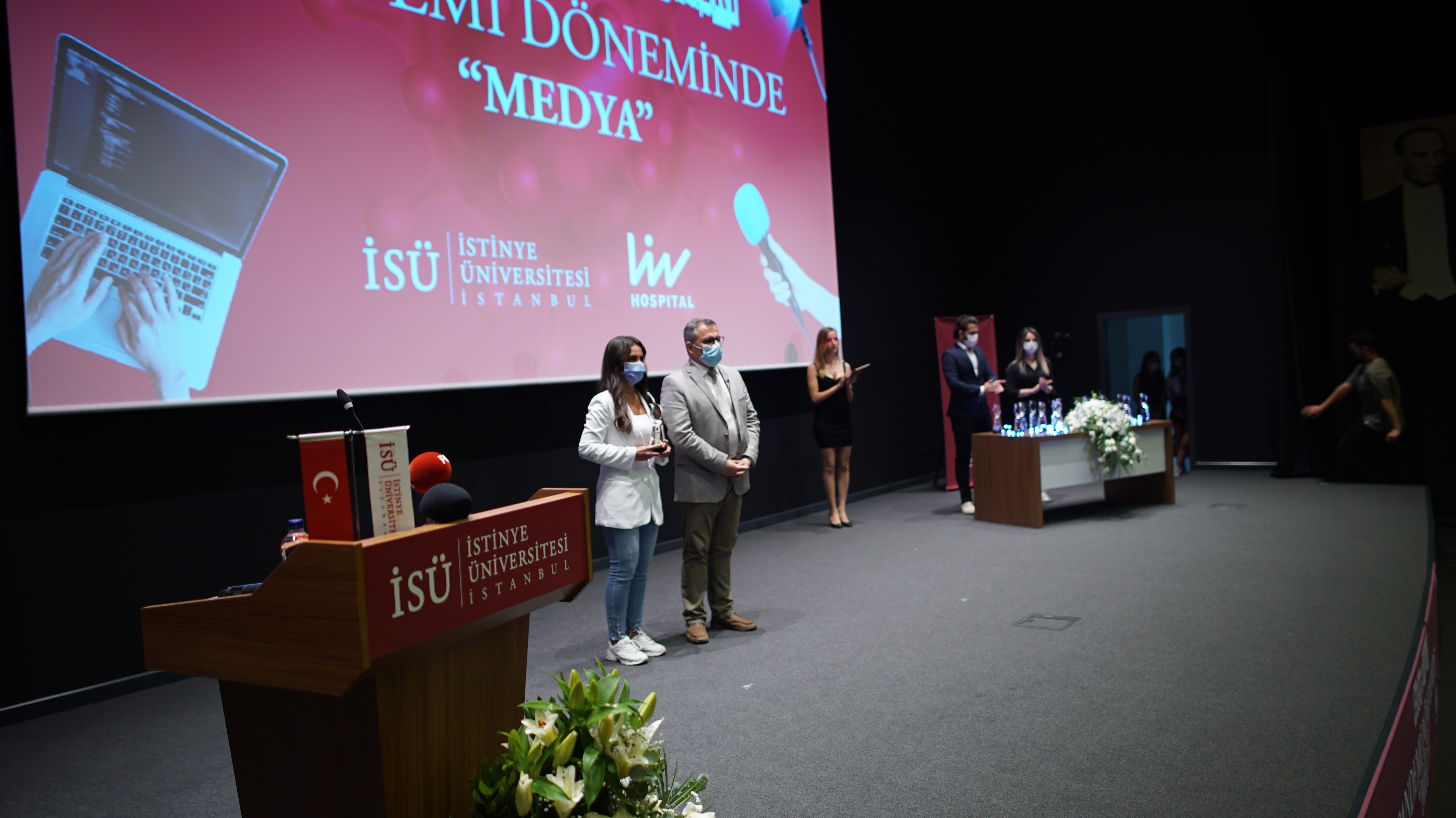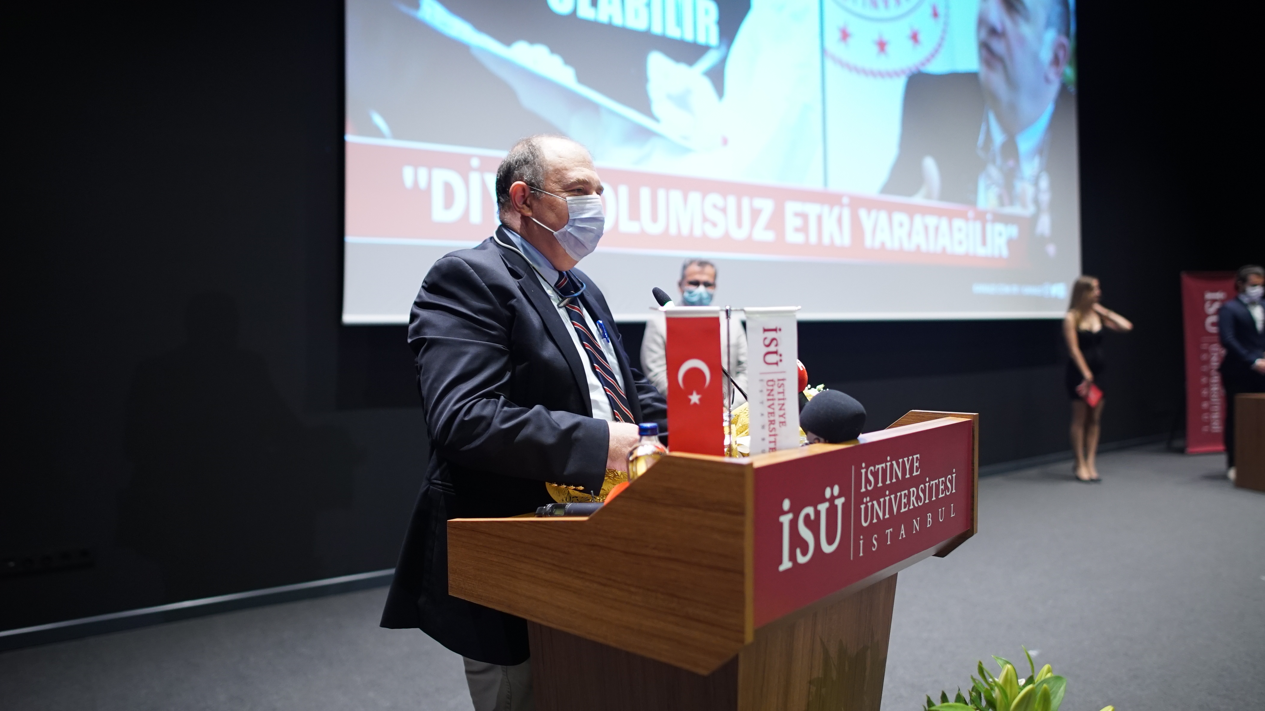 İstinye Üniversitesi Rektörü Prof. Dr. Erdal Karaöz’ün konuşmasıyla başlayan törende Prof. Dr. Karaöz, “Kamuoyunun bilime ve bilimsel düşünmenin güvenilirliğine büyük bir ihtiyaç duyduğu pandemi döneminde, İstinye Üniversitesi’nin ve akademisyenlerinin bilimsel çalışmaları yanında kamuoyunu bilgilendirme çalışmaları da yaparak salgınla mücadeleye destek verdiklerini belirtti ve benzer bir sorumluluğu İstinyeli öğrencilerin de göstermesinden duyduğu mutluluğu paylaştı. Pandemi dönemi ile beraber uzaktan eğitim sürecinde uzaktan eğitim ile eğitimlerine devam eden öğrencilerin, sorumlu bir vatandaş olarak kurallara uymalarının toplum için öneminin altını çizen Prof. Dr. Karaöz “öğrencilerimiz bu sorumluluğu bir adım öteye taşıyarak toplumu bilgilendirmek için çalışan medya mensuplarını ödüllendirdiler, kendilerini tebrik ediyorum” dedi.