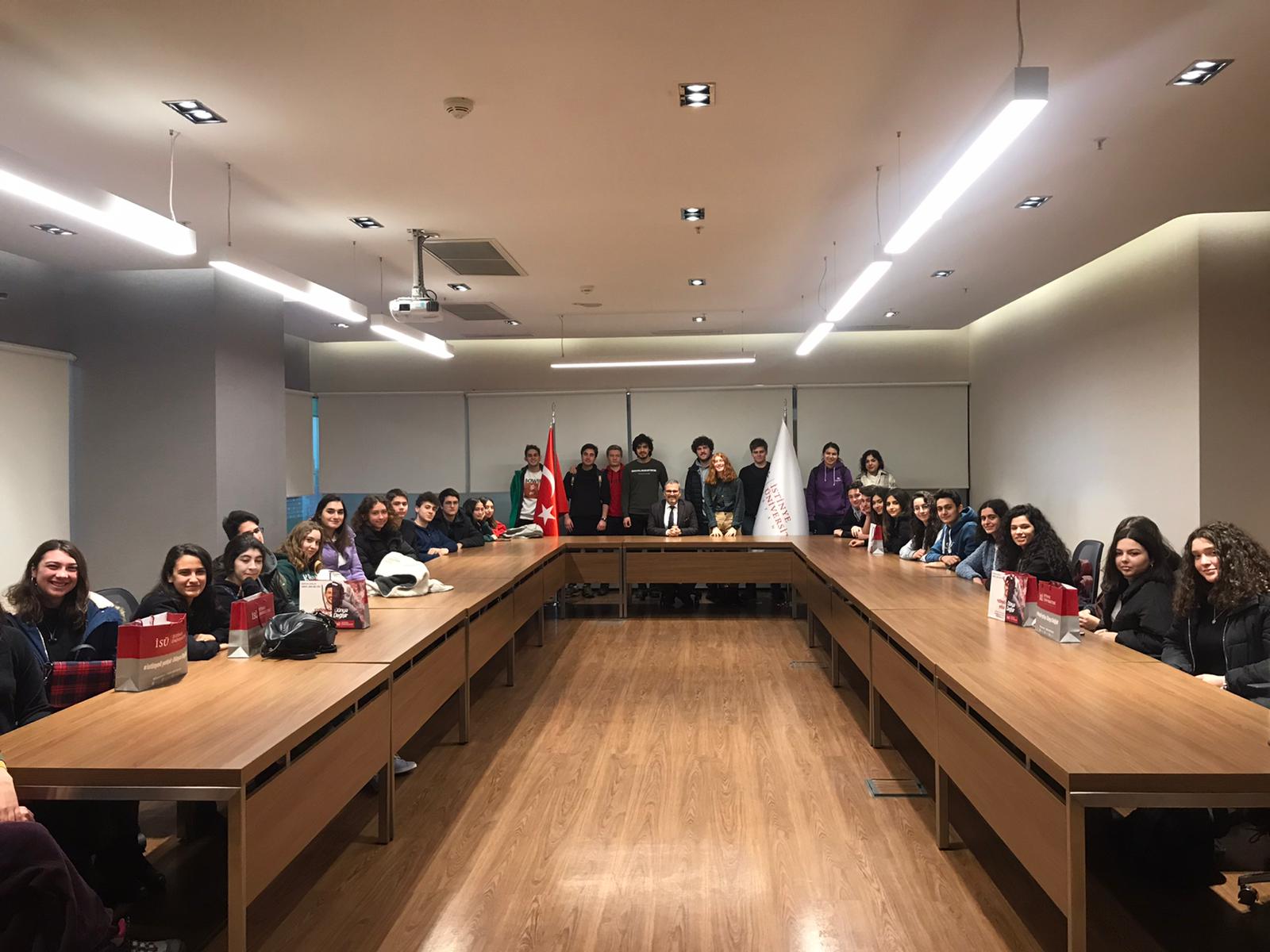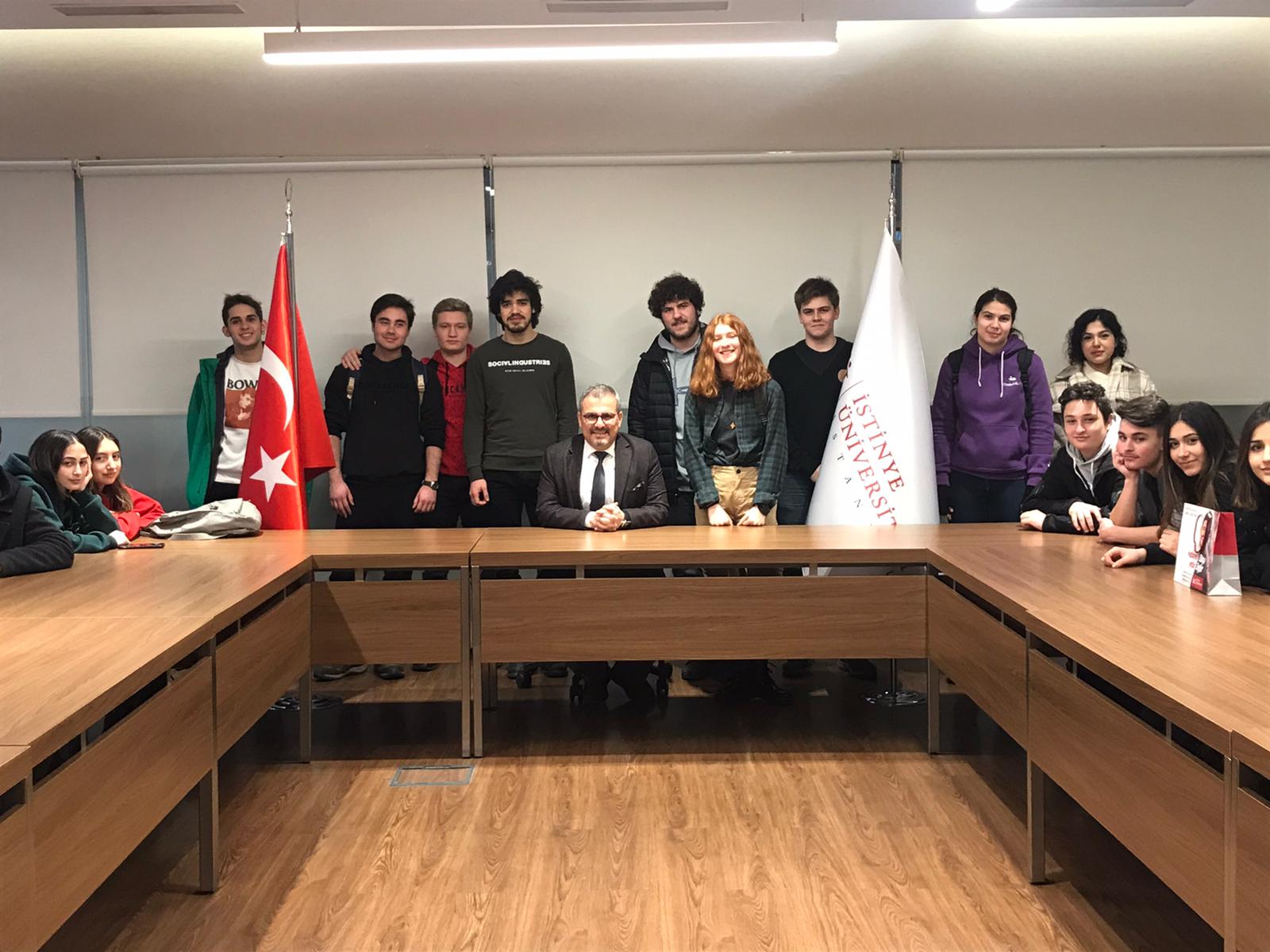 Kadıköy Anadolu Lisesi öğrencileri Yapay Zekâ çalışmalarımızla alakalı Bilgisayar Mühendisliği Bölüm Başkanı Dr. Öğr. Üyesi Mustafa Mısır'dan bilgi alarak, Rektörümüz Prof. Dr. Erdal Karaöz ile bir araya geldiler.