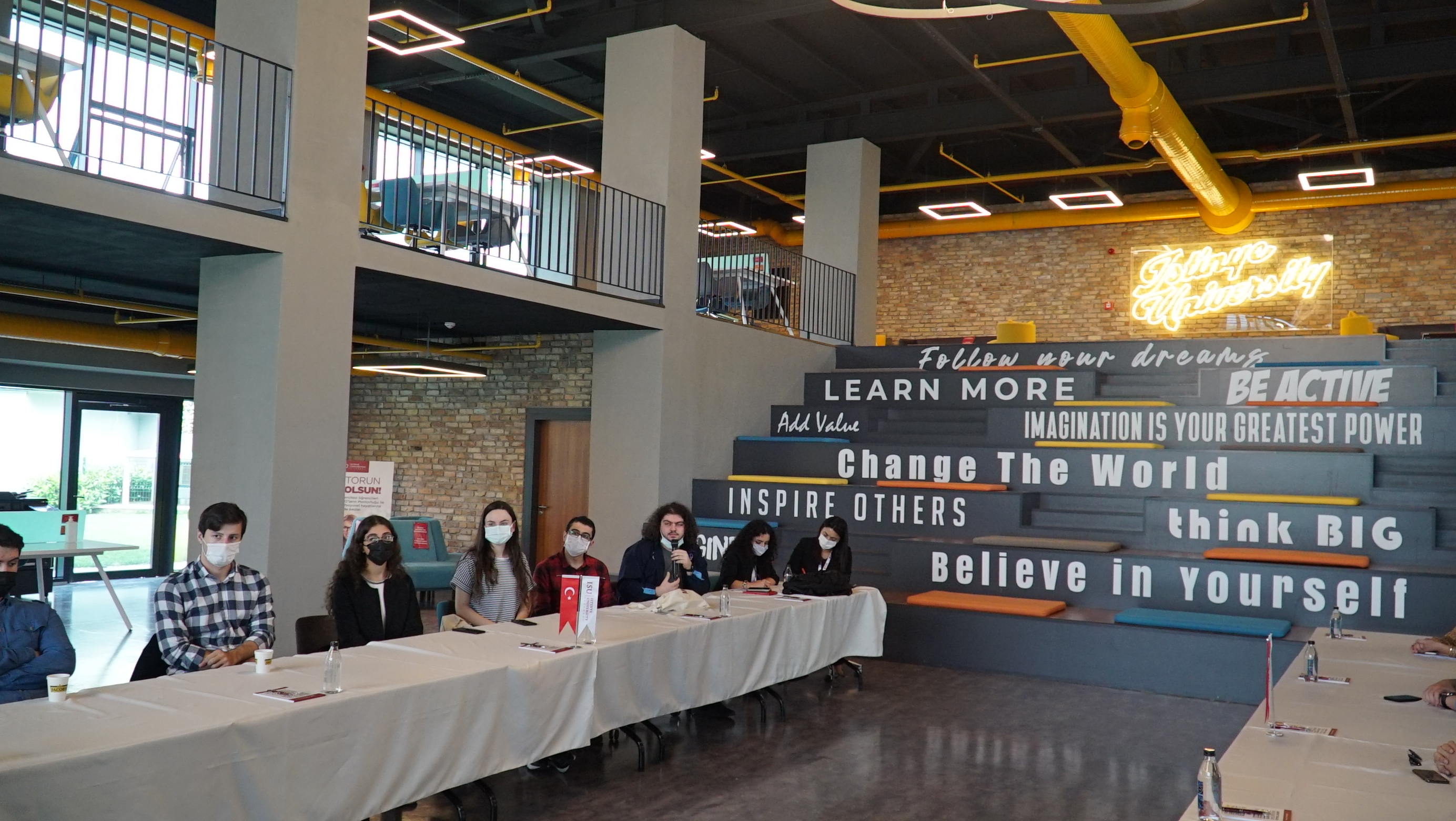 Rektörümüz Prof. Dr. Erdal Karaöz’ün açılış konuşmasını gerçekleştirdiği etkinlikte mezun olacak öğrencilerle bir araya gelen Dr. Muharrem Usta, öğrencilere doğru bir kariyer planlamaları yapmaları konusunda tavsiyelerde bulundu. Kongre merkezinde gerçekleştirdiği konuşmada deneyimlerini ve iş dünyasının güncel durumunu katılımcılarla paylaşan Dr. Muharrem Usta, Öğrenci Merkezimizde gerçekleşen organizasyonda öğrencilerle bireysel görüşmeler gerçekleştirdi.
