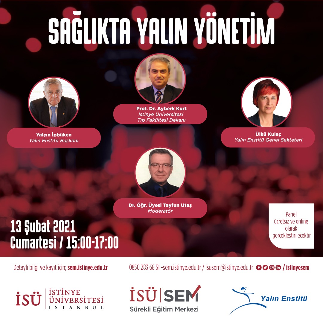 İstinye Üniversitesi Sürekli Eğitim Merkezi tarafından Yalın Enstitü iş birliğiyle çevrimiçi olarak düzenlenen Sağlıkta Yalın Yönetim Paneli, yoğun katılımla 13 Şubat Cumartesi günü gerçekleşti.