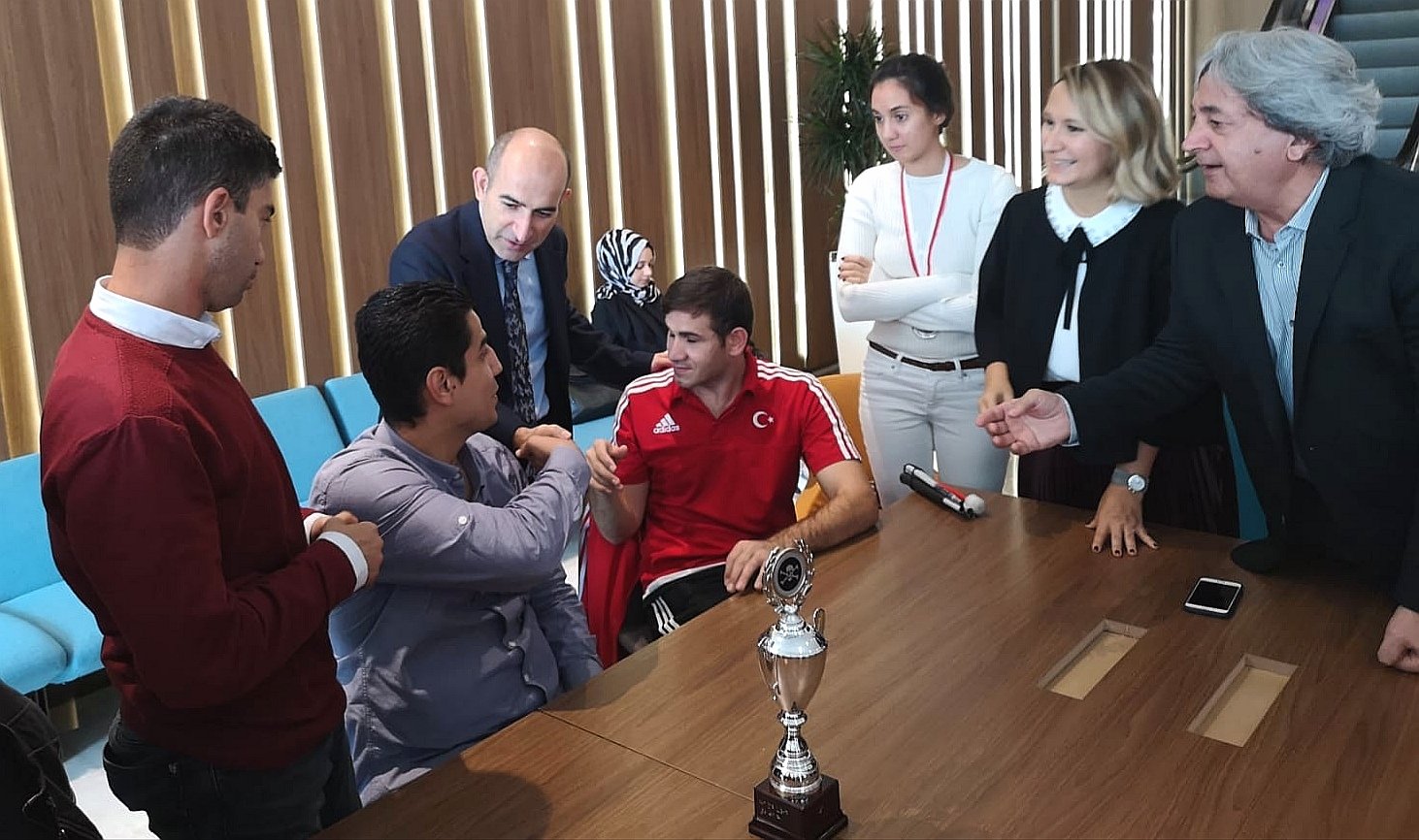 Almanya’nın Hamburg şehrinde gerçekleşen 11. Görme Engelliler Futbol Turnuvasına Türkiye'den katılan ilk takım olmanın gururunu yaşayan TURGED Futbol takımı, turnuva boyunca gösterdiği başarılı performansla ikincilik kupasının sahibi oldu. Kazandıkları kupayı İstinye Üniversitesine takdim eden TURGED Futbol Takımı oyuncuları, heyecanlarını İstinye Üniversitesi akademisyenleriyle paylaştı.