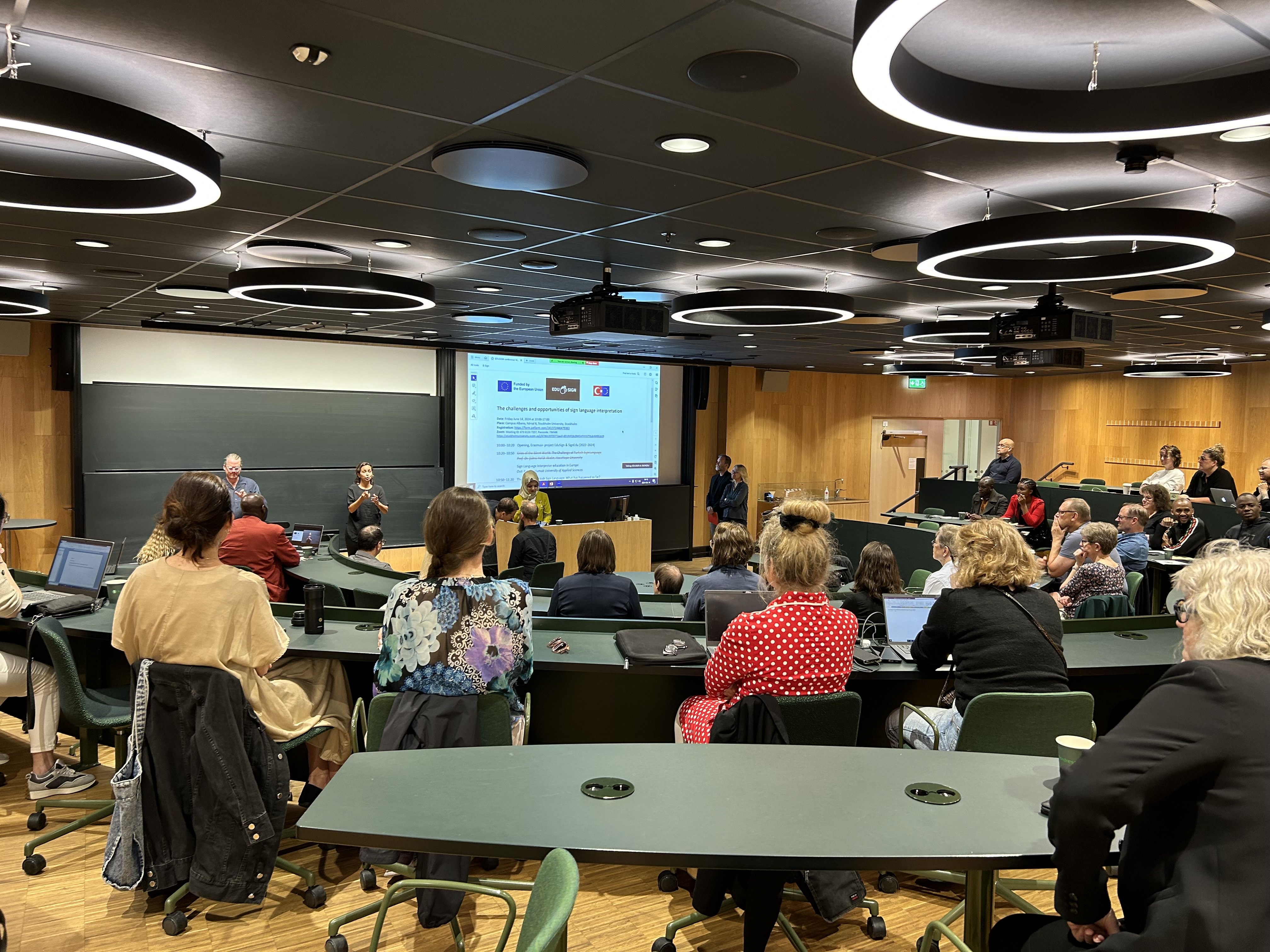 Proje kapsamında verilen konferansta ise İngilizce, Türk İşaret dili, İsveç İşaret Dili, Fin İşaret Dili ve Uluslararası İşaret Dili arasında simultane çapraz çeviriler yapıldı. Aynı esnada İngilizce konuşma ve çeviriler Türk ekibinden İngilizce bilmeyenler için simultane olarak Türkçeye çevrildi.