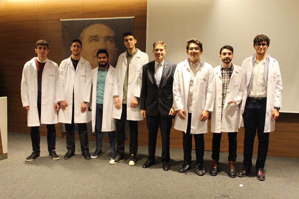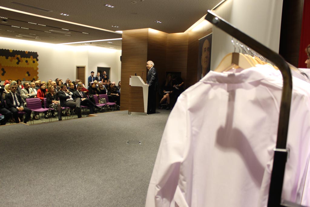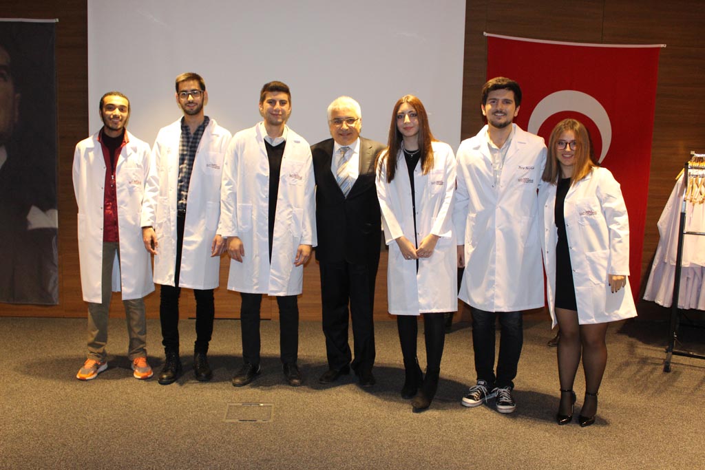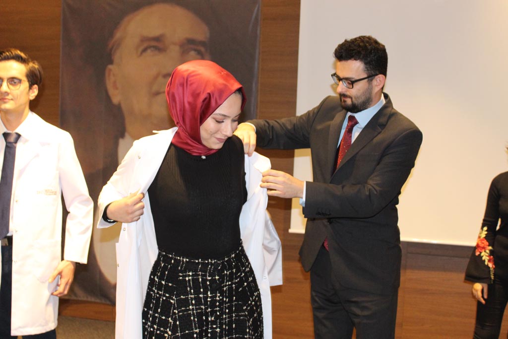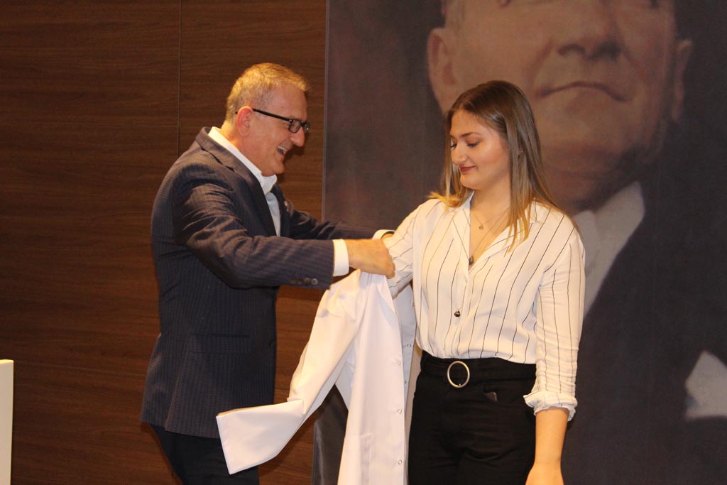 Tıp Fakültesine birinci sırada giren öğrenci Yavuz AYDEM‘in konuşmasıyla başlayan tören, Tıp Fakültesi Öğretim Üyesi Prof. Dr. Levhi AKIN’ın günün önemini anlatan konuşmasıyla devam etti. Öğrencilere çok güçlü bir altyapıya ve akademik kadroya sahip araştırmacı bir üniversitede tıp fakültesi okuyacaklarını hatırlatan Prof. Dr. Levhi AKIN, "Bu mesleği seçerek, yaşamınızı insanlara adamaya karar verdiniz. Beyaz önlüğün rengi, sizin vicdanınızın rengidir." sözleriyle konuşmasını tamamladı.