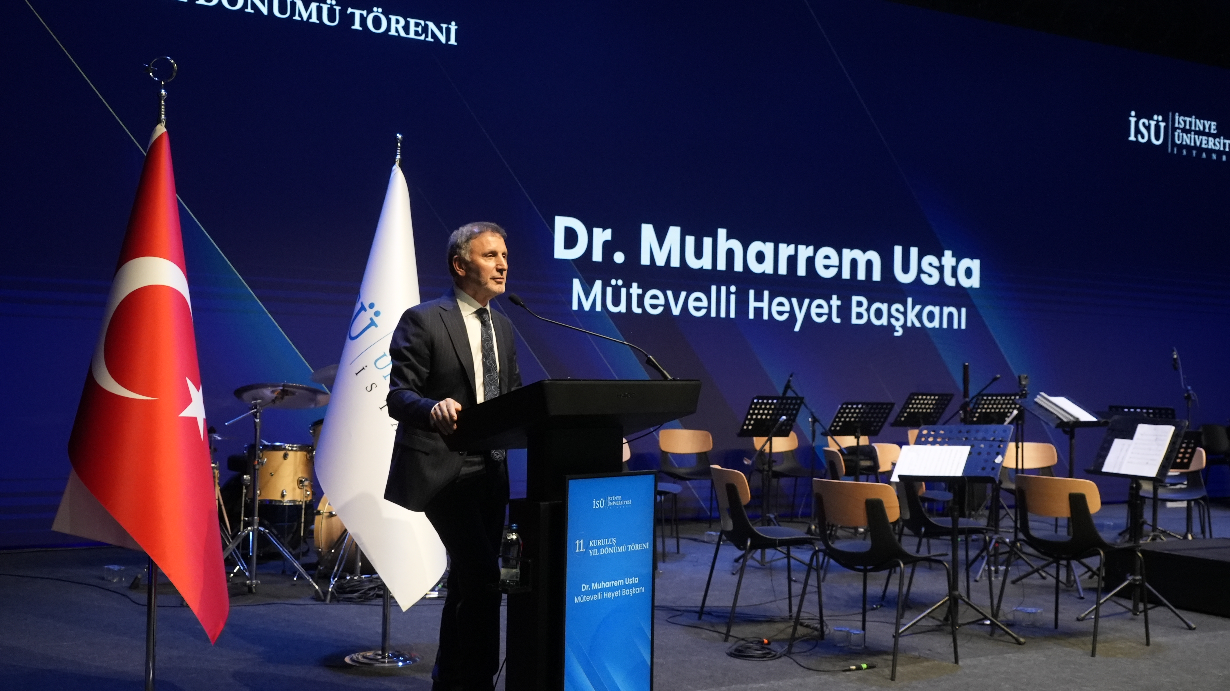 Dr. Muharrem Usta konuşmasında “İyi ki 35 yıl hastanecilik alanında 40'a yakın hastane inşa etmişiz; hastaneciliğin sadece bir hizmet üretme alanı değil, bilgi üretme için en değerli hazine olduğunu daha iyi görmeye başladık. Sahip olduğumuz data ve derinlik sayesinde, eskiden 'neyimizi muhatap alsınlar ki' dediğim küresel kuruluşlarla yan yana oturup bir anda çok önemli projeleri konuşabildiğimizi gördüm. Muhtemelen 5 yıl sonrasında, globalde İstinye Üniversitesi'nin teknoloji üretiminde çok önemli bir noktada olacağıyla ilgili içimde olağanüstü bir huzur var. Hep birlikte göreceğiz ki, İstinye Üniversitesi olağanüstü gurur duyduğumuz bir global marka olacak. Önümüzdeki 5 yıl hepimiz için bambaşka bir dünyaya yolculuk olacak ve bu kurum globaldeki bilgi üretiminin en önemli paydaşlarından birisi haline gelecek.”dedi.