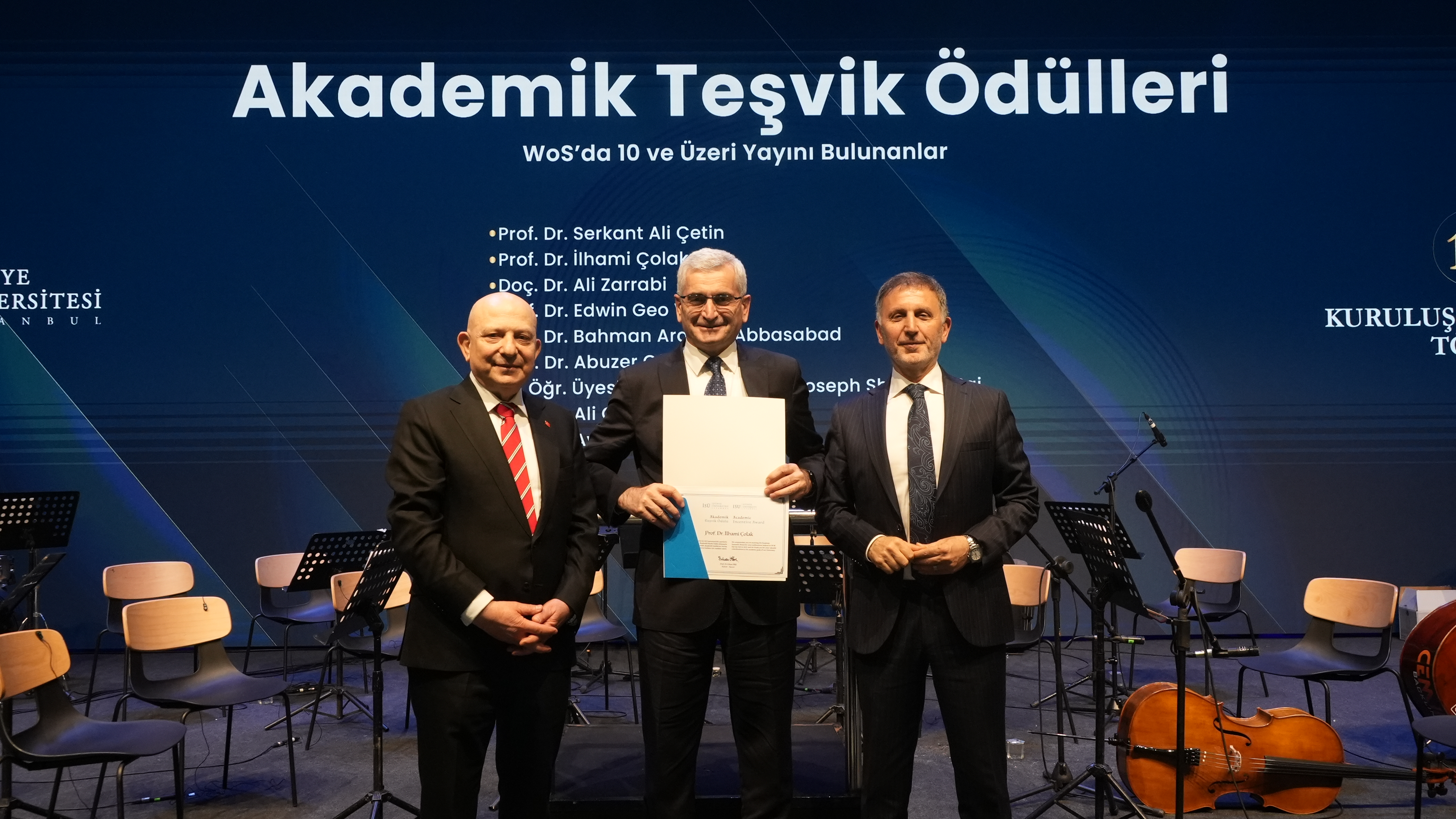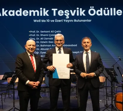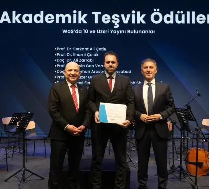 Akademik başarıların da öne çıktığı törende, 2025 yılı Akademik Teşvik Ödülleri sahiplerini buldu. Uluslararası indekslerde, özellikle Scopus Q1, Q2 ve Q3 kategorilerinde önemli yayınlara imza atan akademisyenler; yayın sayısına göre farklı kategorilerde ödüllendirilerek bilimsel üretkenlikleri dolayısıyla tebrik edildi.
