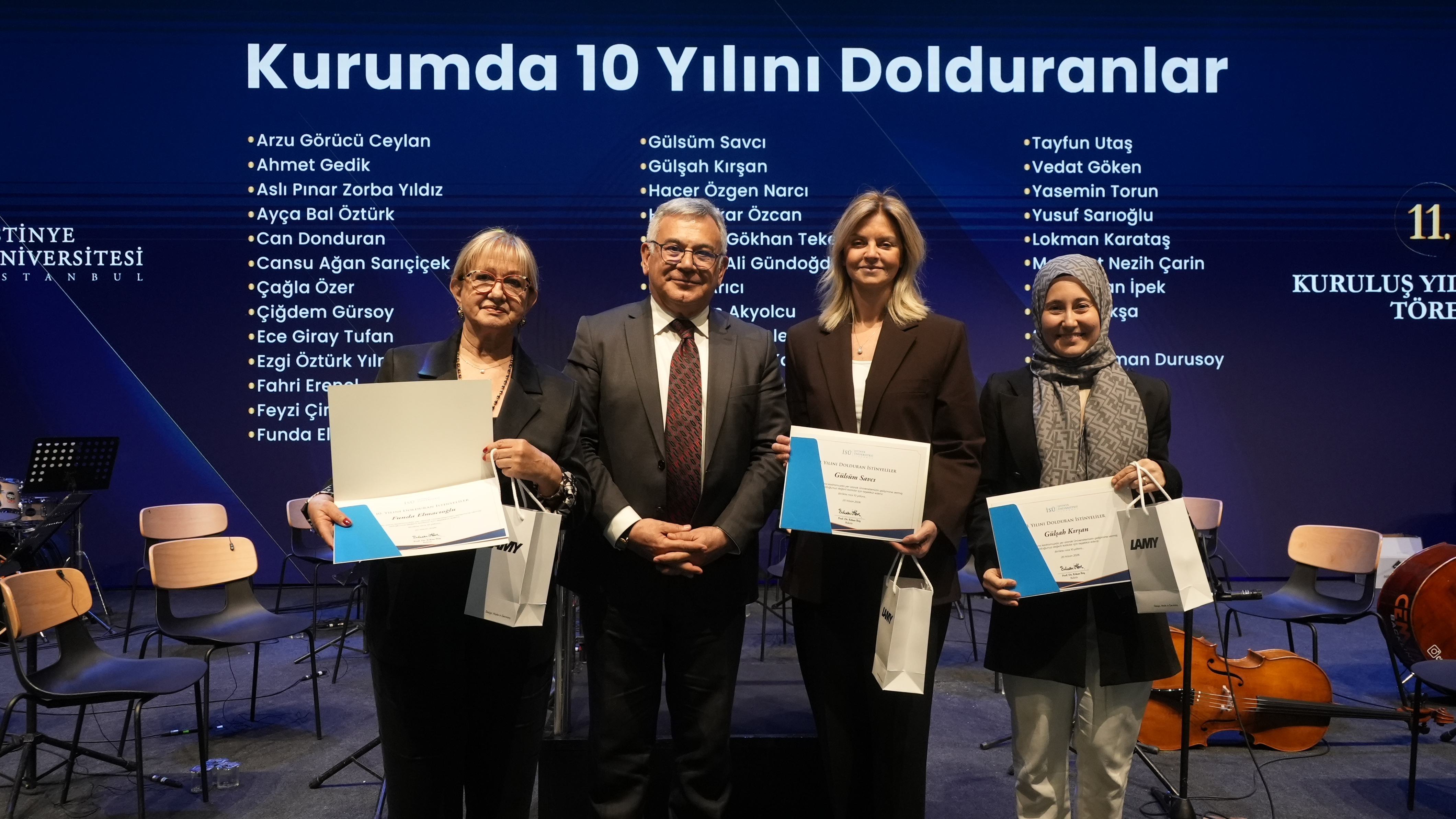 Tören kapsamında, İstinye Üniversitesi ailesinin 11. yıl için hazırladığı özel mesajların yer aldığı video gösterimi katılımcılarla buluşturuldu. Programın en anlamlı bölümlerinden birinde ise, üniversitede 10 yılını tamamlayan akademik ve idari personele belge takdim edildi. Kuruma uzun yıllar emek veren çalışanlar, sahnede alkışlar eşliğinde onurlandırıldı.