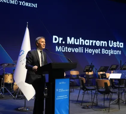 Açılış konuşmalarının devamında Mütevelli Heyet Başkanımız Dr. Muharrem Usta, üniversitemizin kuruluş vizyonunu ve geleceğe yönelik hedeflerini paylaştı.