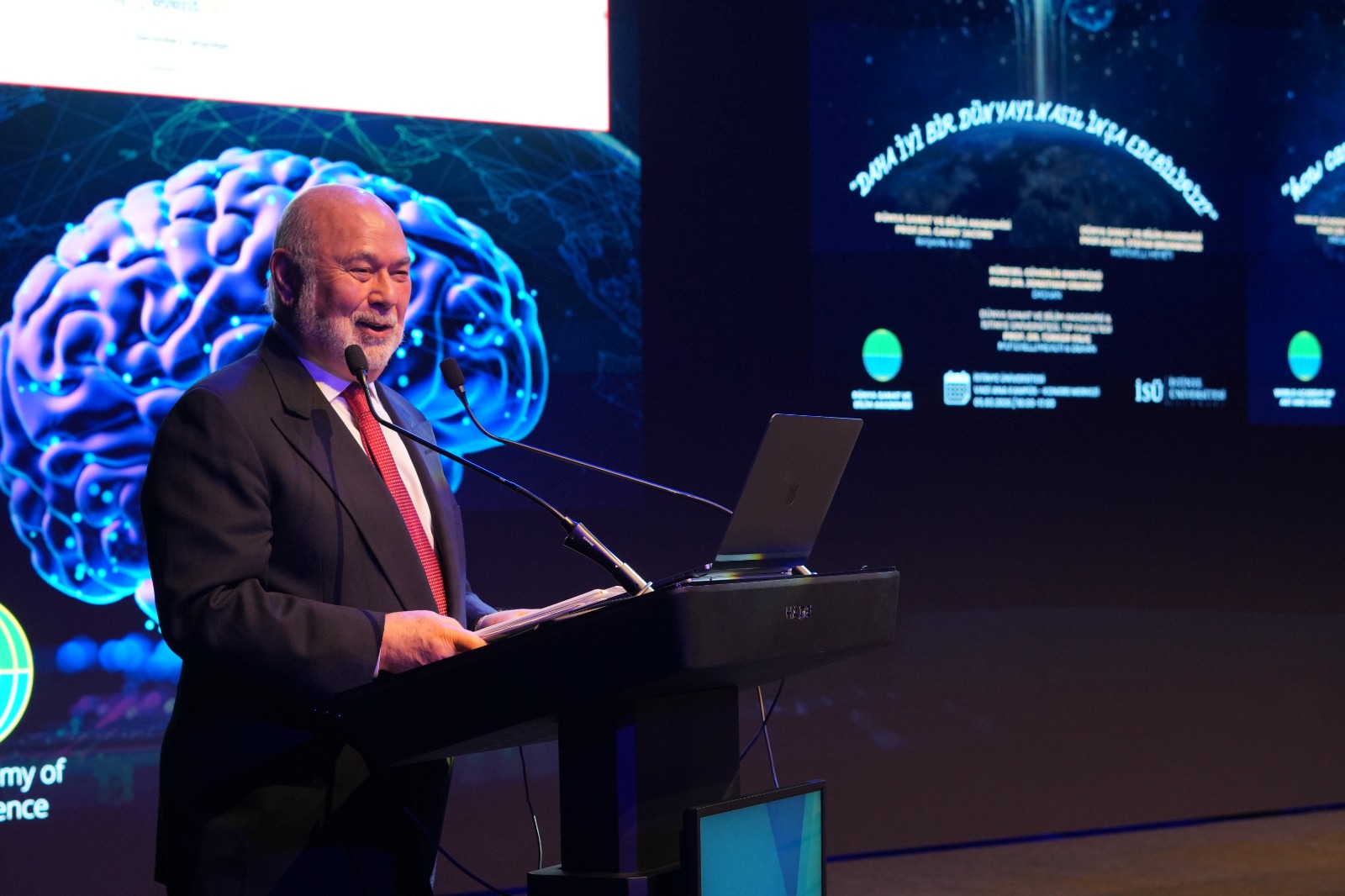 Üniversitemiz, küresel ölçekte insanlığın karşı karşıya olduğu temel sorunları bilimsel ve düşünsel bir perspektiften ele almak amacıyla önemli bir uluslararası etkinliğe ev sahipliği yaptı. Dünya Sanat ve Bilim Akademisi iş birliğiyle düzenlenen “Beyin, Zihin ve Yaşam Sempozyumu”, 5 Mart 2026 tarihinde İstinye Üniversitesi Vadi Ana Kampüs Kongre Merkezi’nde gerçekleştirildi. Farklı ülkelerden bilim insanlarını, akademisyenleri ve düşünürleri bir araya getiren sempozyumda; küresel barış, sürdürülebilir kalkınma, yapay zekâ ve yeni medeniyet modelleri gibi insanlığın geleceğini yakından ilgilendiren konular çok yönlü olarak ele alındı.