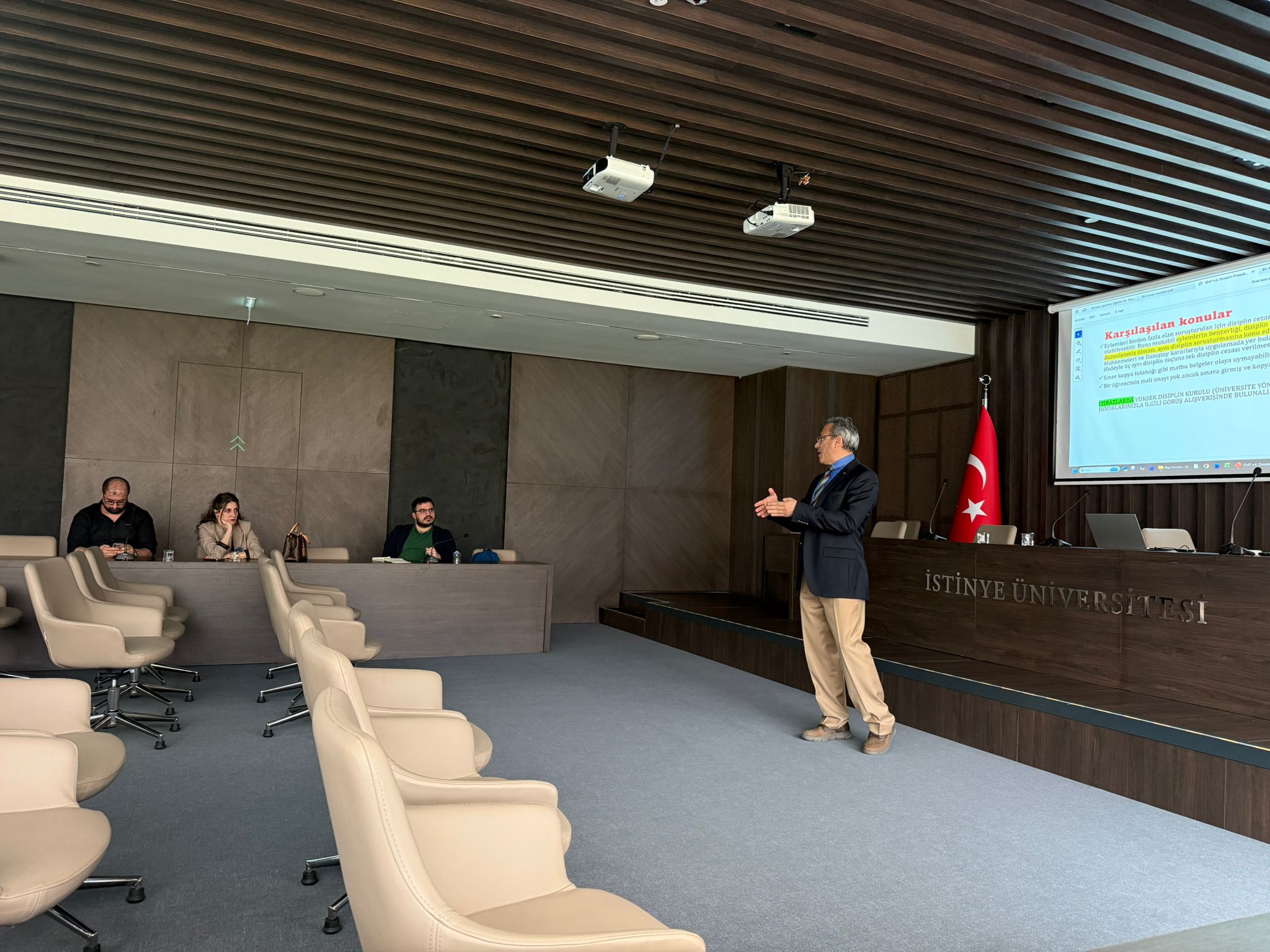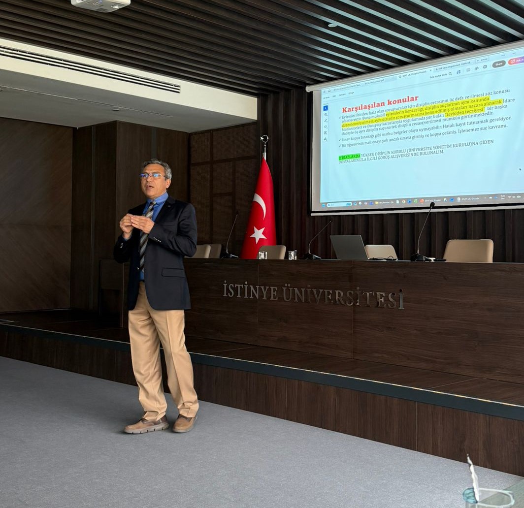 Bu kapsamda daha önce 08 ve 09 Ocak 2026 tarihlerinde Fakülte ve Meslek Yüksekokulu sekreterlerine, 20 ve 24 Şubat 2026 tarihlerinde ise disiplin soruşturmalarında görev alan akademisyenlere verilen eğitimlerin devamı niteliğinde, 27 Mart 2026 tarihinde Vadi Kampüsü Ana Yerleşkemizde Üniversitemizin dekan ve müdür yardımcılarına yönelik bir eğitim programı düzenlendi. Eğitim, Disiplin ve Mevzuat İşleri Koordinatörü ve MYO Hukuk Bölümünden Dr. Öğr. Üyesi M. Fatih Çınar tarafından iki ders saati süresince gerçekleştirildi.