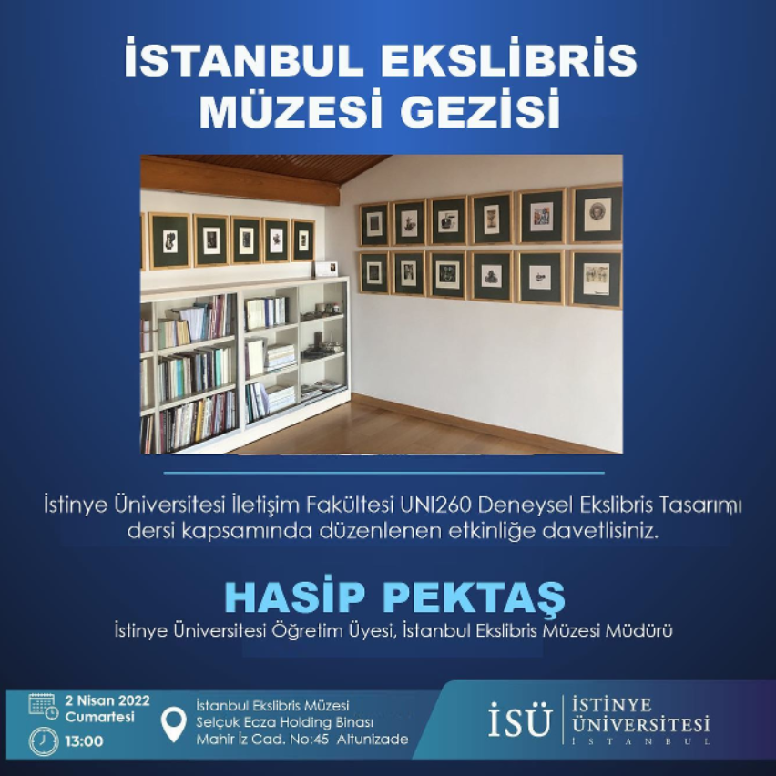 Görsel İletişim Tasarımı bölümü öğretim üyesi ve İstanbul Ekslibris Müzesi müdürü Prof. Dr. Hasip Pektaş, İstinye Üniversitesi öğrencileriyle İstanbul Ekslibris Müzesi'ne gezi düzenledi. Öğrenciler, gezi esnasında müze koleksiyonunu ve dünya çapında farklı sanatçıların eserlerini yakından görme imkânı buldu.
