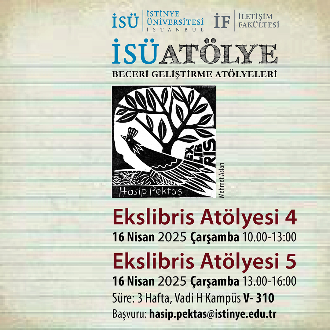 İletişim Fakültesi İSÜATÖLYE Beceri Geliştirme Atölyeleri kapsamında Prof. Dr. Hasip Pektaş ile Ekslibris Atölyesi 22 Ekim 2024’te başlıyor.