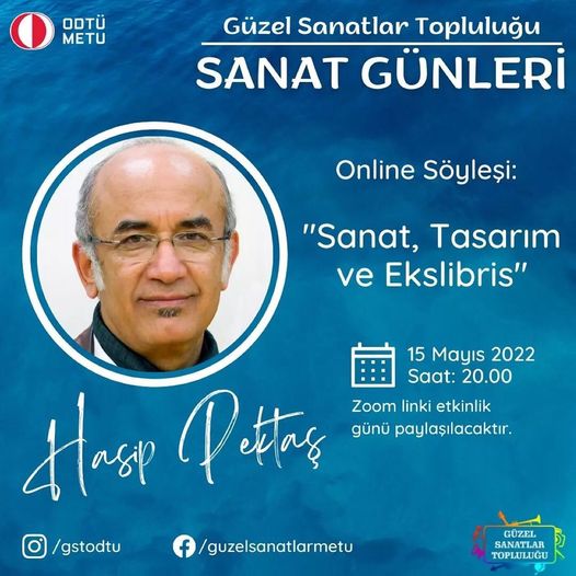 Görsel İletişim Tasarımı öğretim üyesi Prof. Hasip Pektaş, Orta Doğu Teknik Üniversitesi Güzel Sanatlar Topluluğu'nun düzenlediği "Sanat Günleri" kapsamında "Sanat, Tasarım ve Eslibris" başlıklı bir online söyleşi gerçekleştirdi. Etkinlikte ekslibris anlatıldı.