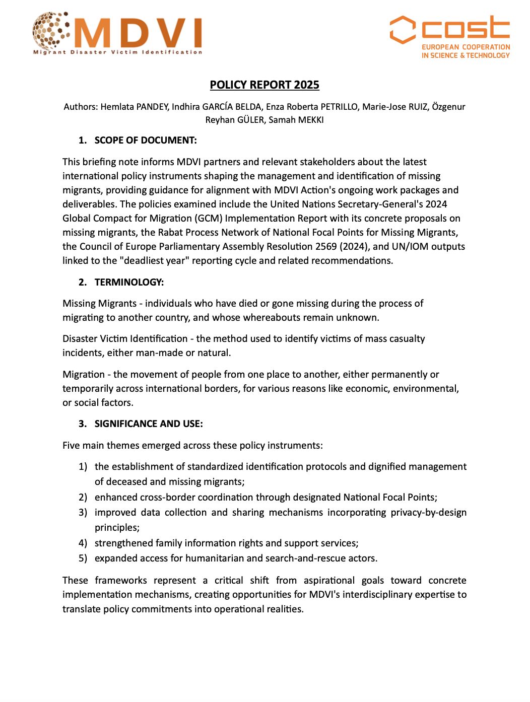 Raporun tam metni: “Policy Report 2025 – Summary of New Policies Affecting Missing Migrants”, COST Action MDVI kapsamında yayımlanmıştır.
