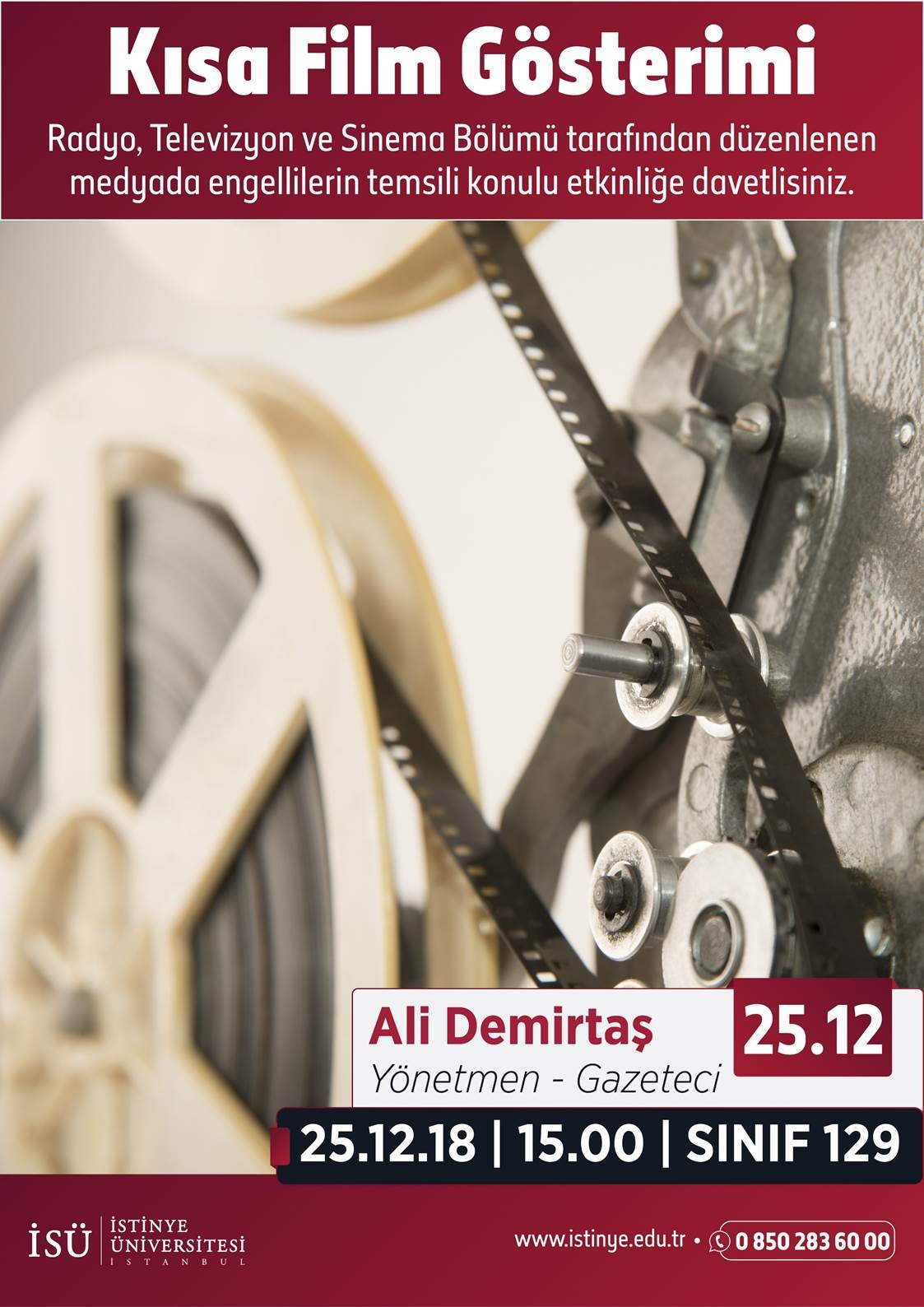 Radyo, Televizyon ve Sinema Bölümü'nün organize ettiği "Medyada Engellilerin Temsili" konulu bir panel düzenlendi. Doc. Dr. Aybike Serttas'ın moderatörlügündeki panelde, işitme duyusu olmayan bir gencin anlatıldığı 'Duyu' adlı kısa film gösterildi. Filmin yönetmeni Ali Demirtas medya dilindeki hak ihlallerine değinerek, doğru bir medya okuryazarlığı ile bu ihlallerin önüne geçilebileceğini söyledi. Demirtas, medya çalışanlarının engelli hakları konusunda bilinçlenmesi gerektiğini ifade etti.