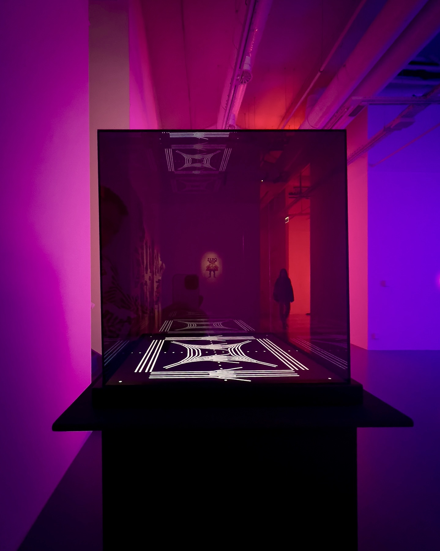 İstinye Üniversitesi İletişim Fakültesi Yeni Medya ve İletişim Bölümü Başkanı Doç. Dr. Kerim Dündar'ın dijital ve fiziksel dünyaların birleştiği noktada tasarladığı son eseri The Kube, kaos ve düzen arasındaki hassas dengeyi araştıran fijital bir enstalasyon olarak öne çıkıyor. Evrimsel algoritmalarla tasarlanan mimari karolar üzerindeki etnı-fütüristik desenler, fiziksel aynaların sonsuz yansımalarıyla birleşerek izleyiciyi görsel ve düşünsel bir metafizik yolculuğa davet ediyor.