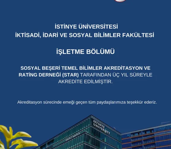 İstinye Üniversitesi İktisadi, İdari ve Sosyal Bilimler Fakültesi olarak, küresel dönüşümün merkezinde yer alan sağlık, teknoloji ve araştırma-geliştirme (Ar-Ge) odaklı eğitim anlayışımızla, geleceği şekillendirecek nitelikli bireyler yetiştirmeyi temel ilkemiz olarak benimsemekteyiz.