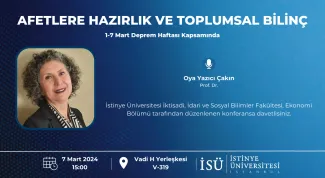 Ekonomi Bölümümüz Afetlere Hazırlık ve Toplumsal Bilinç konulu etkinliğini Prof. Dr. Oya Yazıcı Çakın' ın katılımı ile gerçekleştirdi