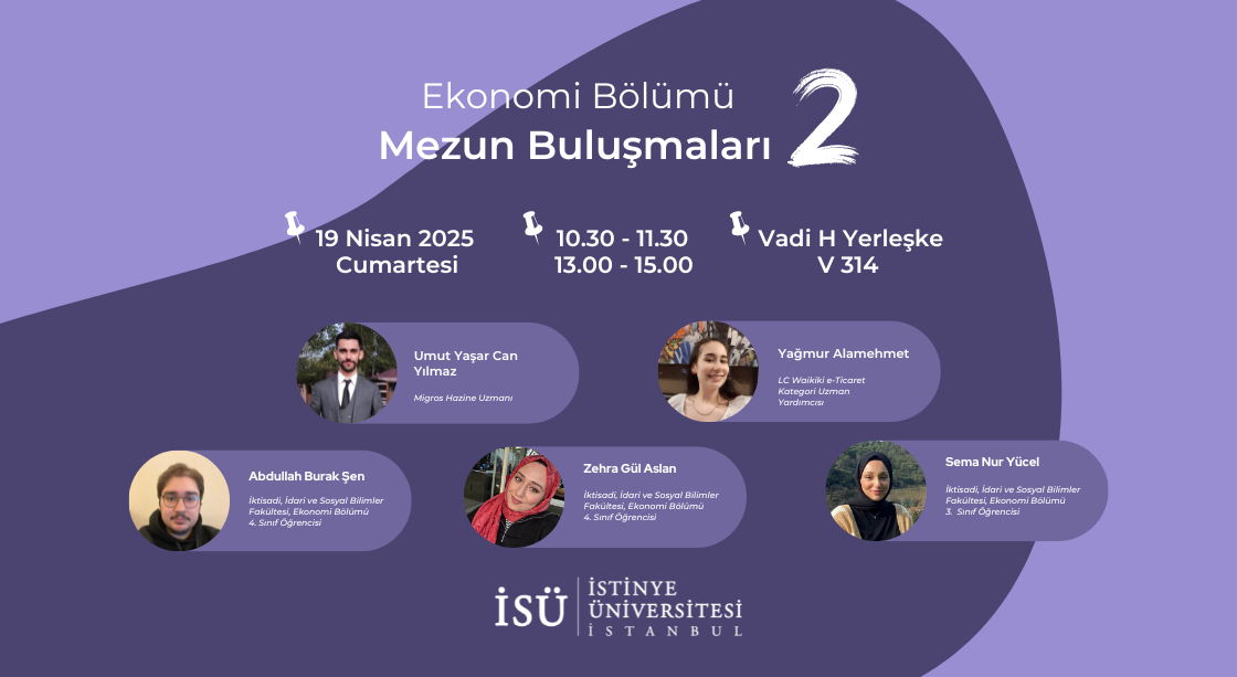 Ekonomi Bölümü'nün 2. mezun buluşması 2025 Bahar Atölyesi kapsamında gerçekleşti. Mezun olan ve stajı devam eden öğrencilerimiz, devam eden öğrencilerimize ve lise öğrencilerine iş hayatına ilişkin tecrübelerini aktardı.