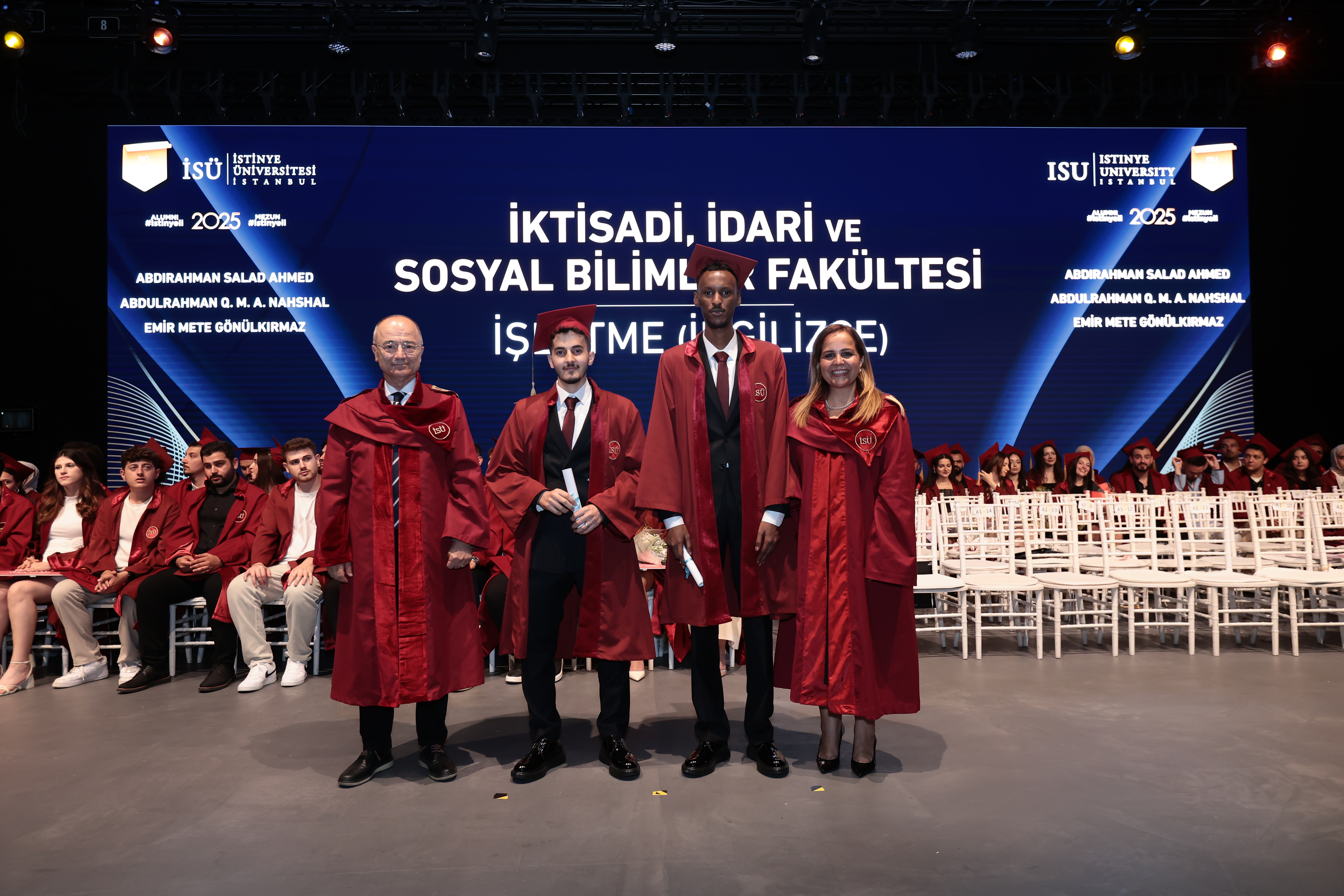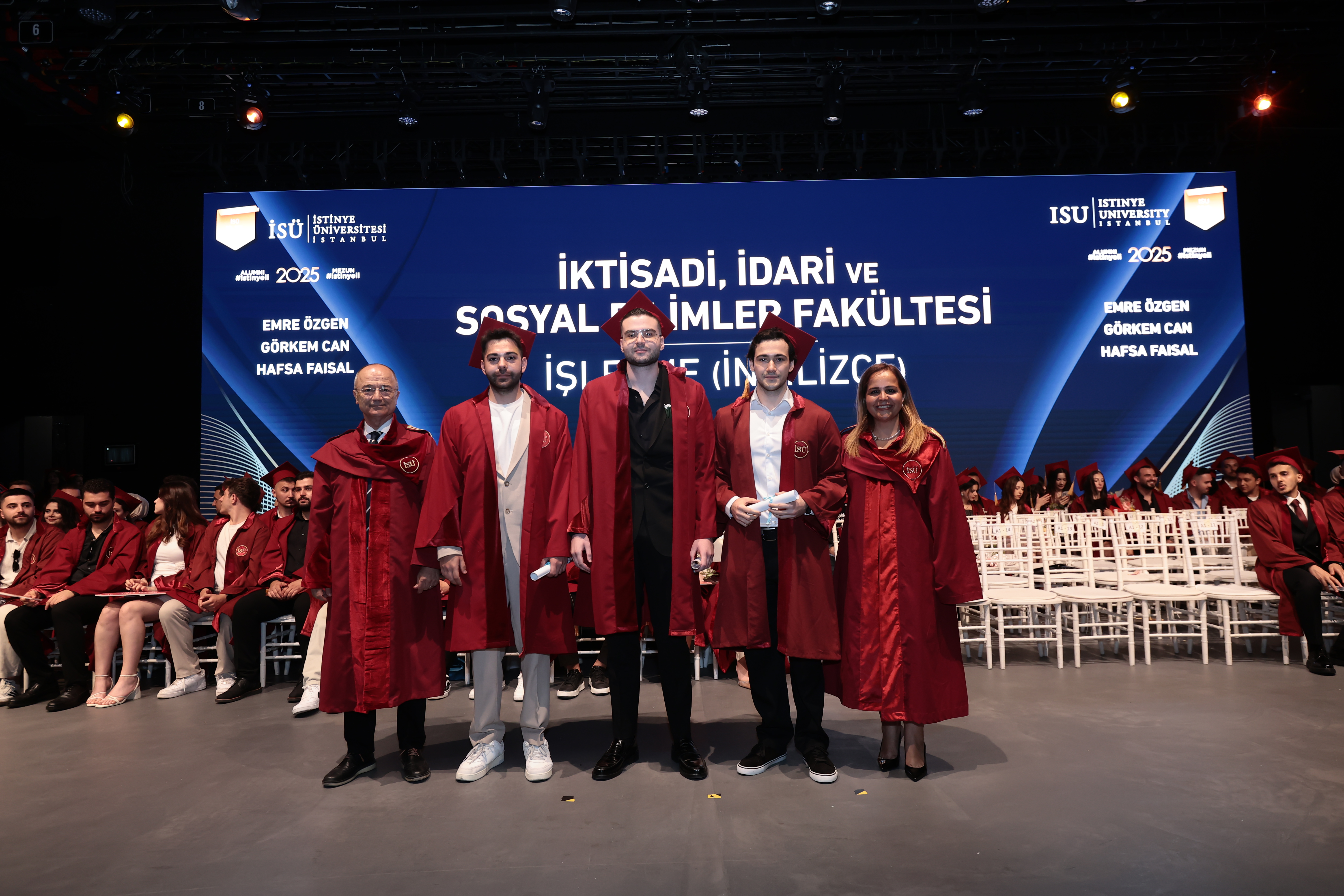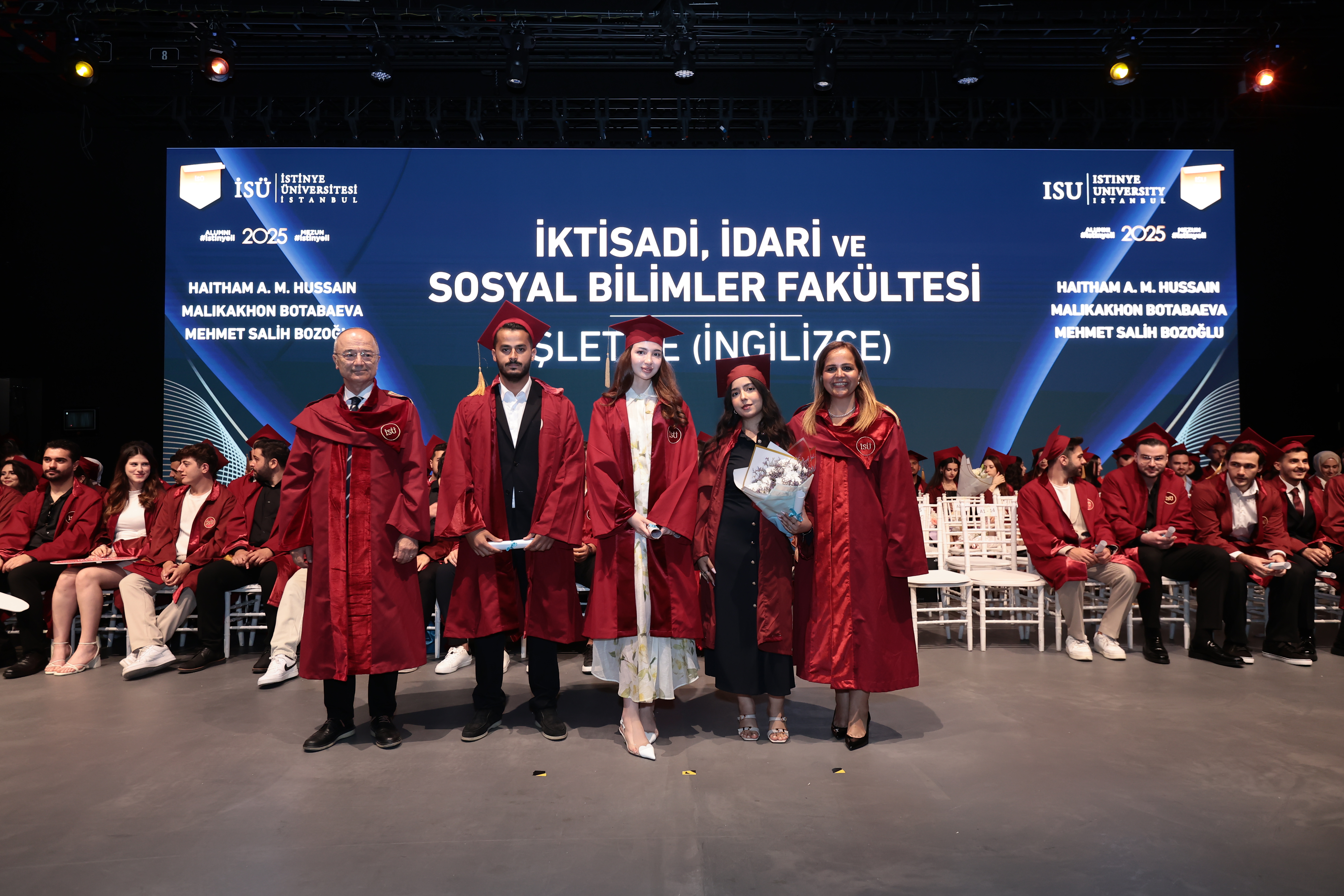 İstinye Üniversitesi İktisadi, İdari ve Sosyal Bilimler Fakültesi İşletme (İngilizce) Bölümü, 2024–2025 akademik yılı mezunlarını büyük bir gurur ve coşkuyla uğurladı. Mezuniyet töreni, öğrencilerimizin dört yıllık yoğun emeklerinin ve akademik başarılarının taçlandığı anlamlı bir an olarak hafızalarda yer etti.