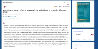 Bölümümüz öğretim üyelerinden Dr. Gülhan Kalmuk ve tezli yüksek lisans programı öğrencilerimizden Ayşe Yalçın'ın birlikte kaleme aldığı "Z KUŞAĞINDA YETENEK YÖNETİM ALGISININ İŞ TATMİNİ VE İŞTEN AYRILMA NİYETİ ÜZERİNE ETKİSİ" başlıklı makale, Yönetim Bilimleri Dergisi'nin son sayısında yayımlanmıştır.