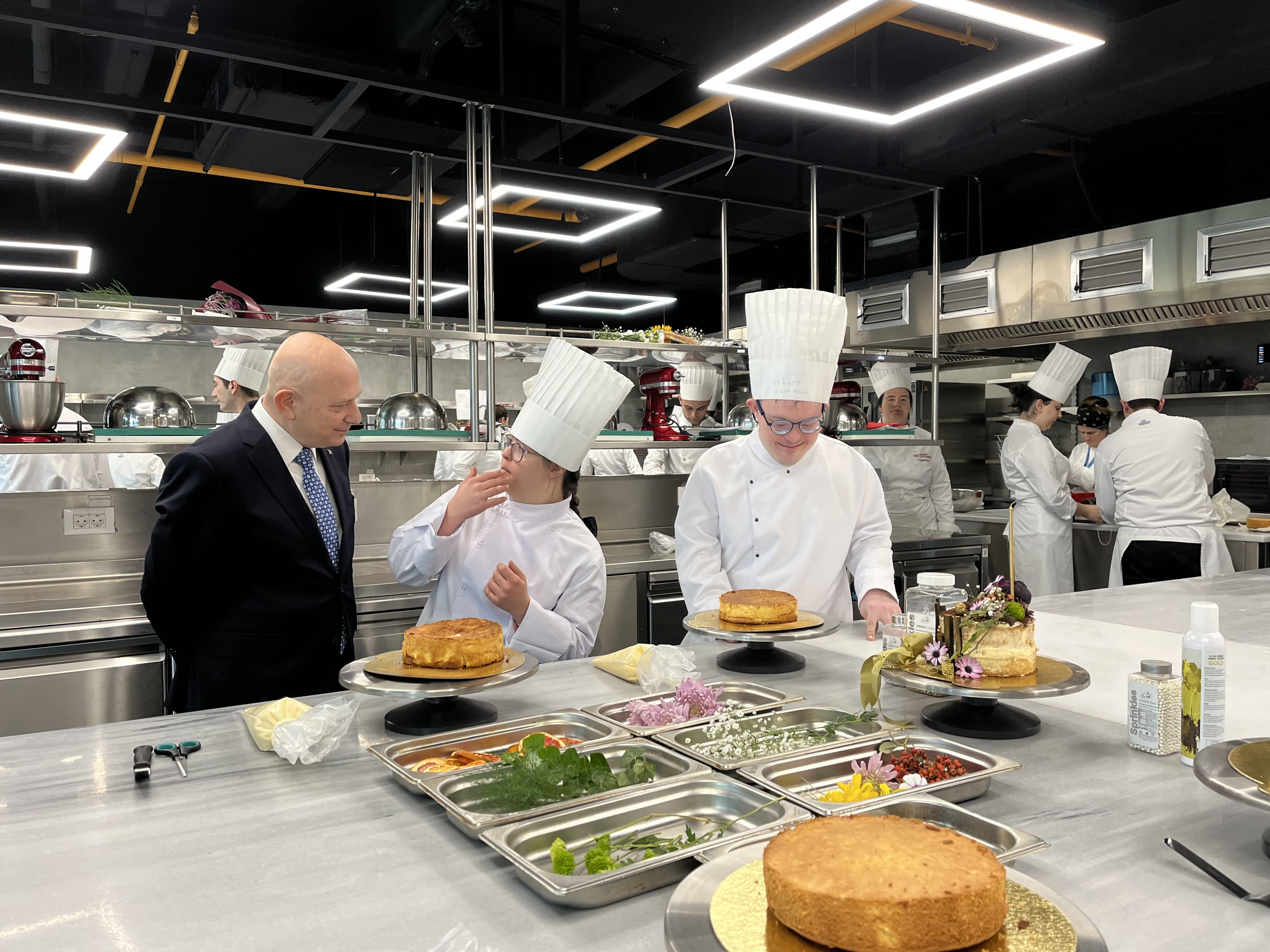 İstinye Üniversitesi’nde özel gereksinimli gençlerin topluma katılımını sağlamak ve yaygınlaştırmak amacıyla başlatılan “Fahri Öğrenci Projesi”nin on haftalık ilk dönemi tamamlandı. TÜBİTAK tarafından desteklenen ve Üniversitemizin Türkiye Down Sendromu Derneği ile yaptığı iş birliği sonrası hayata geçirilen Fahri Öğrenci Projesi’nde 9 down sendromlu öğrenci üniversite düzeyinde eğitim aldı. Özel gereksinimli bireylerin topluma kazandırılması motivasyonuyla Üniversitemizde eğitim alarak bir araya gelen öğrenciler, Gastronomi ve Mutfak Sanatları Bölümü’nde son derslerine girmelerinin ardından önlüklerini giyip, pasta yaptı. Proje başlangıcından itibaren, eğitim süresince günlük tutarak izlenimlerini de paylaşan öğrenciler, Üniversitemizin farklı bölümlerinde birden fazla derse katıldı. Pilot çalışma ile Down sendromlu bireylerin üniversiteye katılımının yanı sıra, projenin Türkiye’deki birçok üniversitede hayata geçirilmesi de hedefleniyor. Proje boyunca hocalar ve öğrenciler açısından çift taraflı farkındalığın artırılması da ana hedefler arasında bulunuyor.