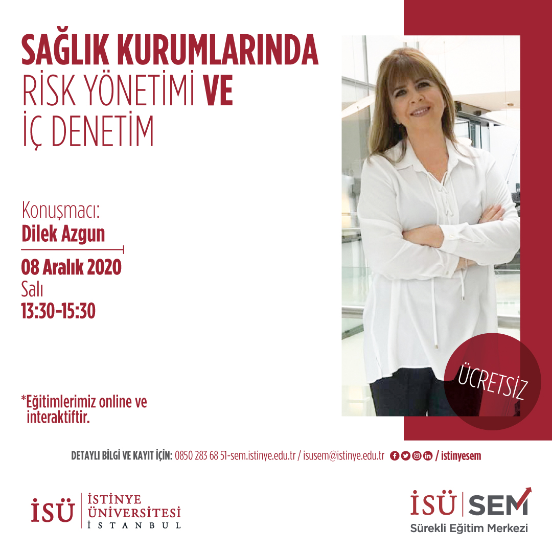 Sağlık kurumlarının da ürün ve hizmet sektörlerinde faaliyet gösteren diğer işletmeler gibi amaçlarını gerçekleştirmelerine yardımcı olmak üzere, gerçekleşen faaliyet ve işlemlere yönelik uygulanan politika ve prosedürleri gözden geçirmeleri önem arz etmektedir. Sağlık Yönetimi Bölümümüz bu konudaki farkındalığı arttırmak ve oluşan tecrübelerden katılımcıların faydalanmasını sağlamak amacıyla, sektörde toplam 37 yıllık üst yönetici tecrübesine sahip olan Sayın Dilek Azgun'un eğitimci olarak katıldığı, "Sağlık Kurumlarında Risk Yönetimi ve İç Denetim" eğitimini düzenledi. Online eğitimimiz  170 kişilik sektör çalışanı, yönetici grubu ve öğrencilerimizin katılımıyla, Bölüm Başkanımız Dr. Öğr. Üyesi Gülhan Kalmuk moderatörlüğünde gerçekleşti. Eğitim çerçevesinde katılımcılar, sadece hatalar üzerinde yoğunlaşan, olmuş bitmişi değerlendiren bir yaklaşımın ötesinde, sürece odaklanarak, risklerin önceden görülmesi dolayısıyla sağlıklı bir değerlendirilmenin yapılabilmesi için gerekenler paylaşıldı.