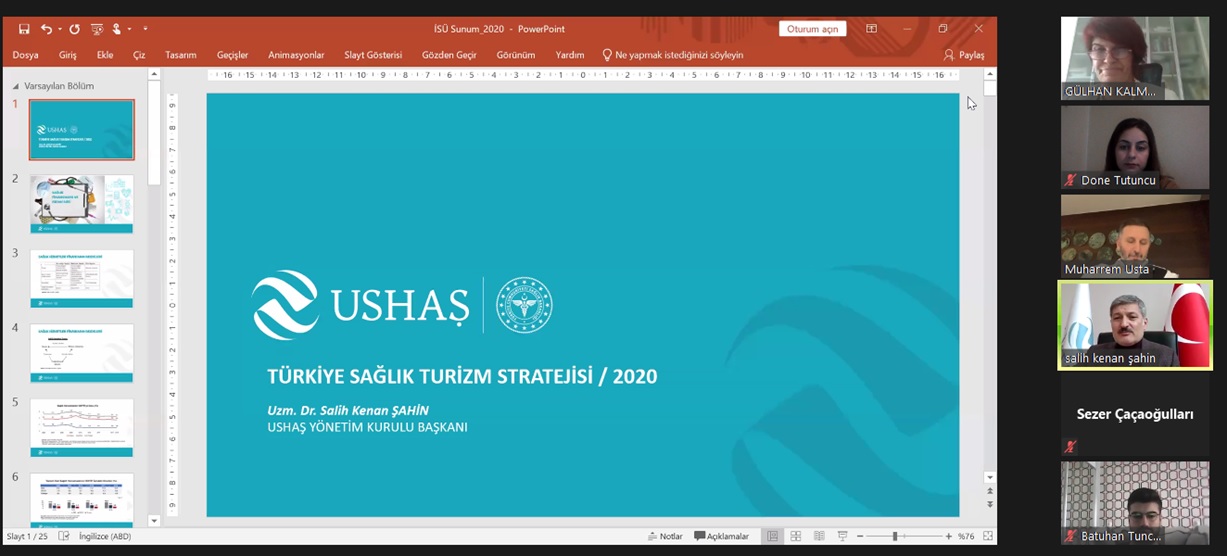 Panel programında Türkiye'de sağlık turizminin ekonomik ve yönetsel yönleri ele alınarak, sağlık turizminin sağlık sektörünün geleceğini nasıl şekillendireceği ve sağlık yöneticilerinin gelecekte üstlenecekleri sorumlulukları tartışıldı. Sağlık Yönetimi Bölüm Başkanımız Dr. Öğr. Üy. Gülhan Kalmuk, İİSB Fakültesi Dekanımız Prof. Dr. Peyami Çelikcan, Rektörümüz Prof. Dr. Erdal Karaöz ve Yönetim Kurulu Başkanımız Dr. Muharrem Usta açılış konuşmalarını yaptı. panel. Panelde USHAŞ Yönetim Kurulu Başkanı Dr. Salih Kenan Şahin çarpıcı bir sunumla Türkiye'nin sağlık turizmi potansiyelini ve geleceğini özetledi. Türkiye Sağlık Bilimleri Enstitüsü Politikalar Kurulu panel üyesi ve duayen sağlık yöneticisi Prof. Dr. Melih Bulut panele "Bilim ve Sağlıkta Diplomasi" konulu konuşmasıyla katıldı. Panelin son konuşmacısı MLP Care Uluslararası Pazarlama ve İş Geliştirme Direktörü ve İstinye Üniversitesi Öğretim Üyesi Murat Ercan, "Pandemi Sırasında ve Sonrasında Sağlık Turizminin Geleceği" konulu konuşması ile katılımcılarla görüşlerini paylaştı.
