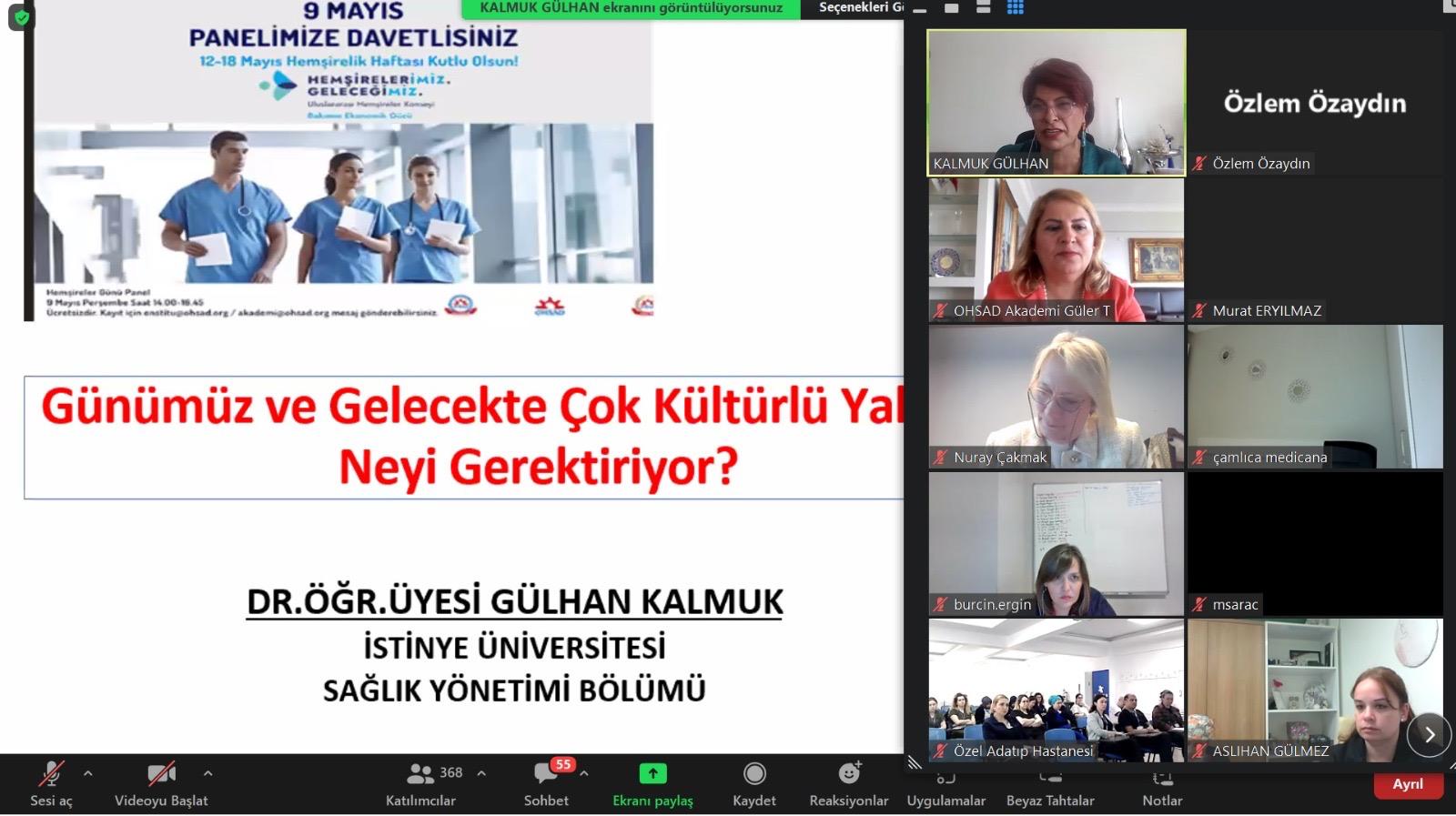 Sağlık Yönetimi Bölümü öğretim üyesi Dr.Öğr.Üy.Gülhan Kalmuk Hemşirelik Haftası Etkinlikleri çerçevesinde Özel Hastaneler Derneği (OHSAD) tarafından düzenlenen 9 Mayıs 2024 Hemşirelik Haftası Panelinde “Günümüz ve Gelecekte Çok Kültürlü Yaklaşım Neyi Gerektiriyor?” konulu sunumu gerçekleştirmiştir.