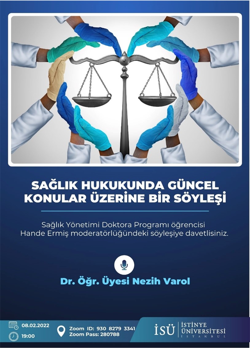 İSÜ Sağlık Yönetimi Doktora Programı olarak sağlık sisteminin iyileştirilmesine katkı sağlama amacımız doğrultusunda; öğrencilerimizin aktif rol üstlendiği söyleşiler dizimizin ilkini 8 Şubat 2022 tarihinde Avukat Hande Ermiş moderatörlüğünde gerçekleştirdik. “Sağlık Hukukunda Güncel Konular Üzerine Bir Söyleşi” başlığı ile güncel bir konuda, keyifli ve verimli bir etkinlik planlayıp gerçekleştiren Avukat Hande Ermiş’e ve değerli katkıları için Dr. Nezih Varol Hocamıza çok teşekkür ederim… Prof. Dr. Hacer Özgen Narcı Program Koordinatörü
