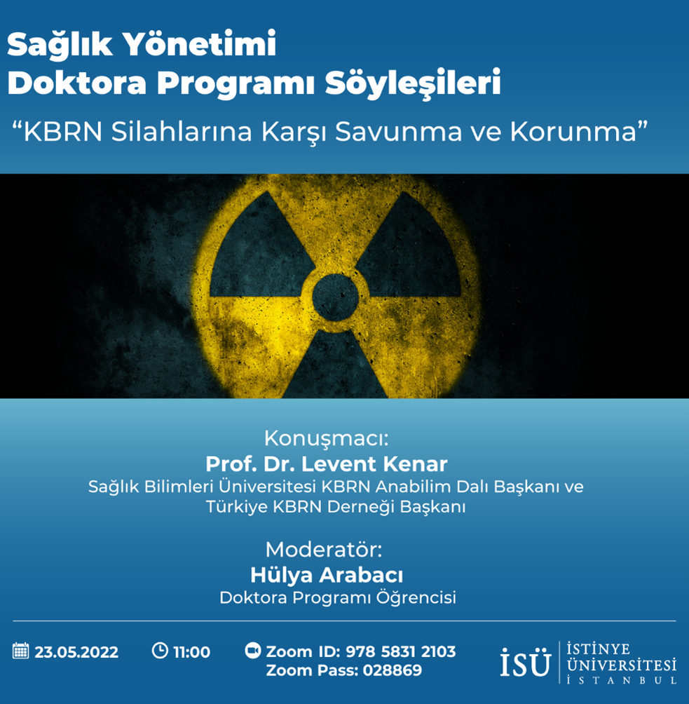 İSÜ Sağlık Yönetimi Doktora Programı olarak sağlık sisteminin iyileştirilmesine katkı sağlama amacımız doğrultusunda; öğrencilerimizin aktif rol üstlendiği söyleşiler dizimizin beşincisini 23 Mayıs 2022 tarihinde gerçekleştirdik. “KBRN Silahlarına Karşı Savunma ve Korunma” başlıklı etkinliğimizi planlayıp gerçekleştiren Hülya Arabacı’ ya ve katkıları için değerli konuşmacımız Prof. Dr. Levent Kenar Hocamıza çok teşekkür ederim… Prof. Dr. Hacer Özgen Narcı Program Koordinatörü