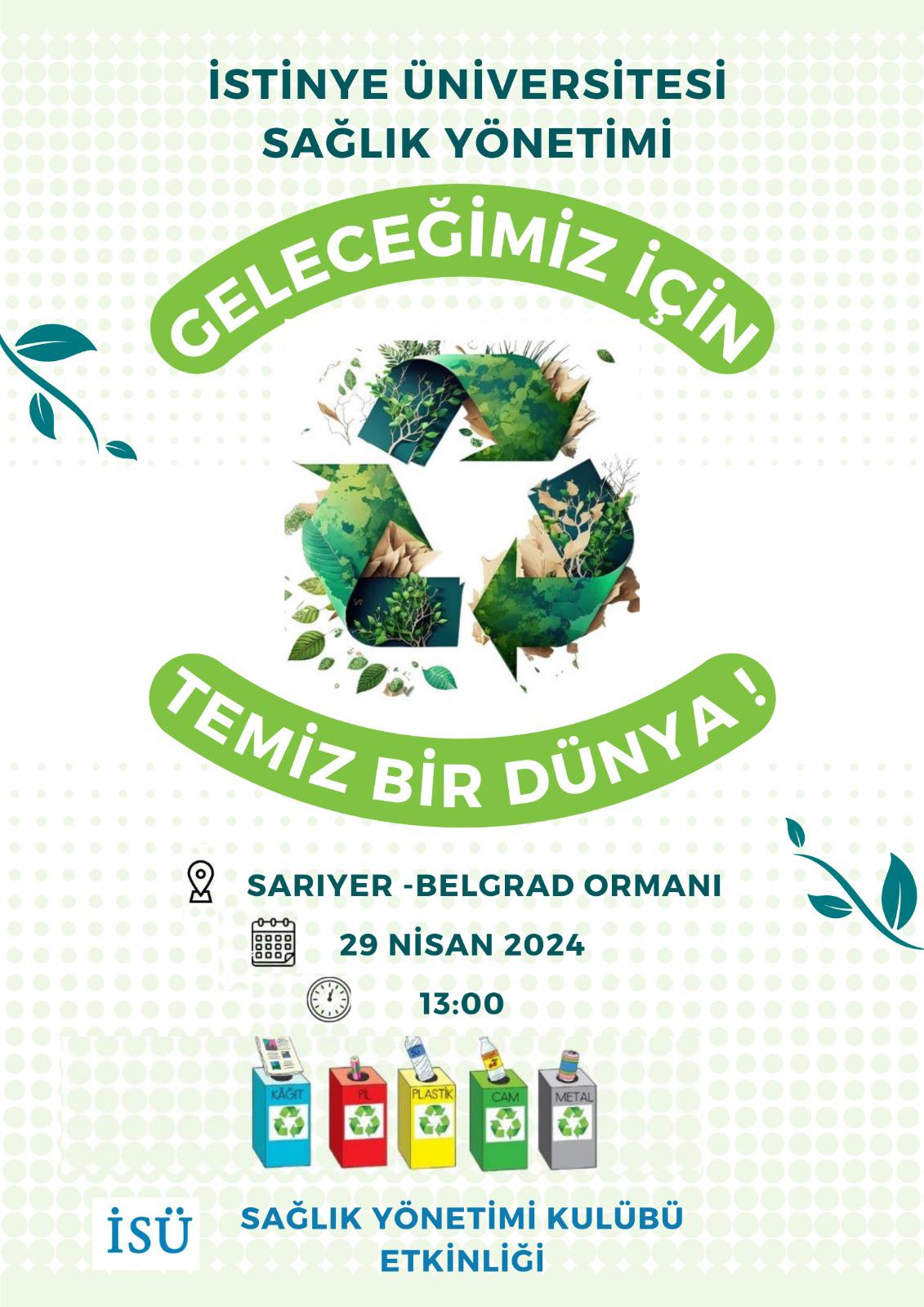 Geleceğimize yaşanılabilir bir dünya bırakmak için, İstinye Üniversitesi Sağlık Yönetimi bölümü çöp toplama etkinliğindeyiz. Etkinliğimiz ile amacımız temiz bir çevre ve doğayı koruma bilincinde yetişecek nesiller oluşmasına katkı sağlamaktır. Bu doğa hepimizin, doğamıza sahip çıkmalıyız.