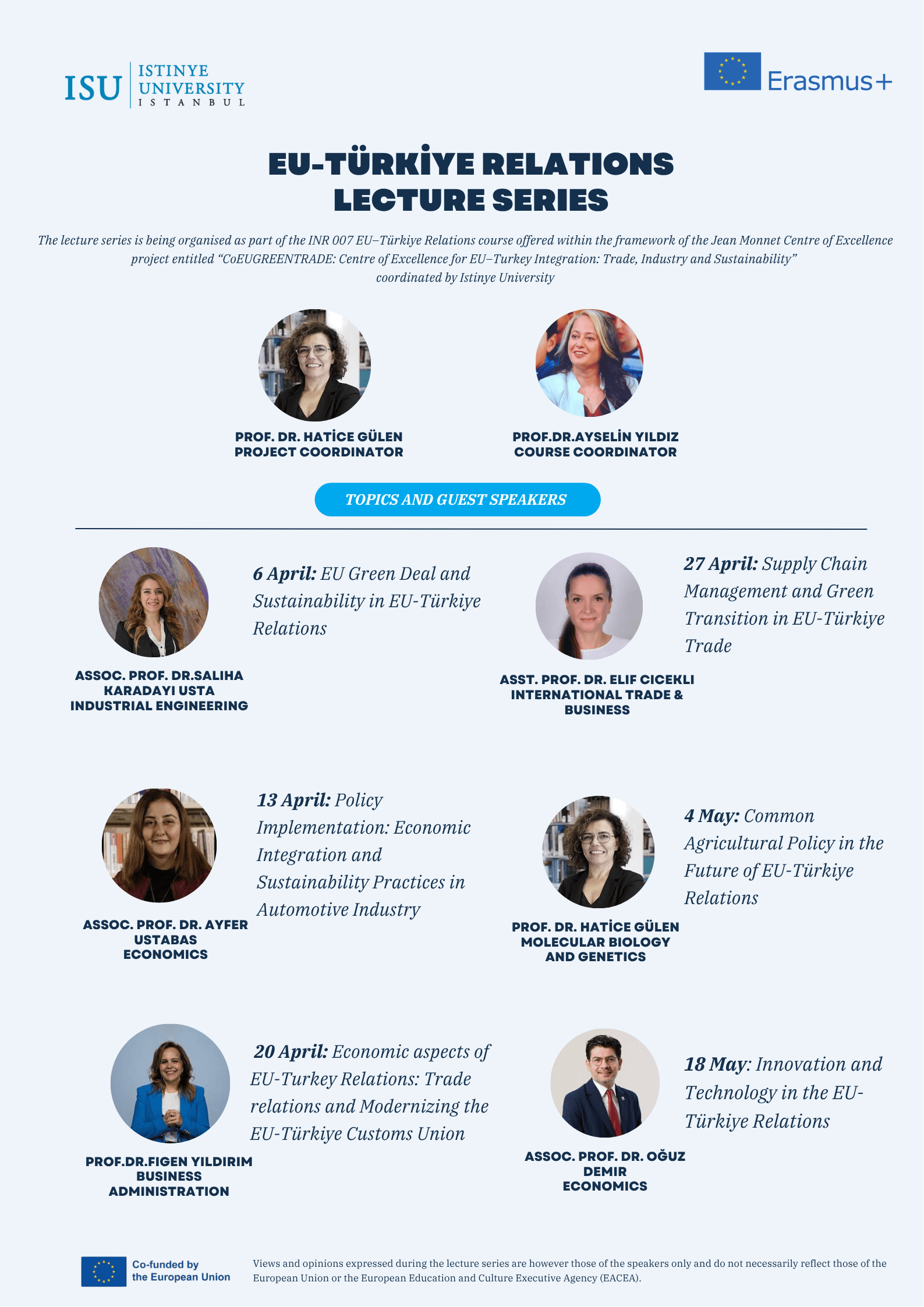 Üniversitemizin koordintör olarak yürüttüğü Jean Monnet Center of Excellence projesi “CoEUGREENTRADE: Centre of Excellence for EU–Turkey Integration: Trade, Industry and Sustainability” kapsamında AB-Türkiye İlişkileri Seminer Serisi düzenlenecektir. Seminerler ilgili tüm hocalarımızın katılımına açıktır.