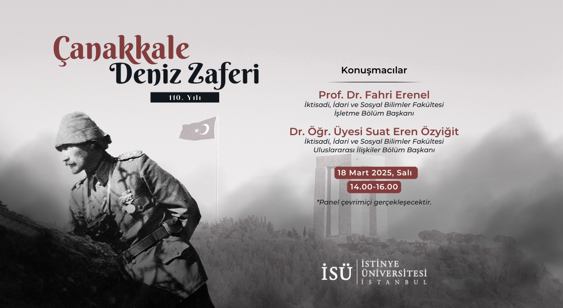 Çanakkale Deniz Zaferi’nin 110. yıl dönümü şerefine düzenlenecek panelimize davetlisiniz. Bu anlamlı etkinlikte, ulusal tarihimizin dönüm noktalarından biri olan Çanakkale zaferinin, günümüz dünyası ve geleceğimiz açısından taşıdığı önemi akademik bir perspektifle ele alacağız.