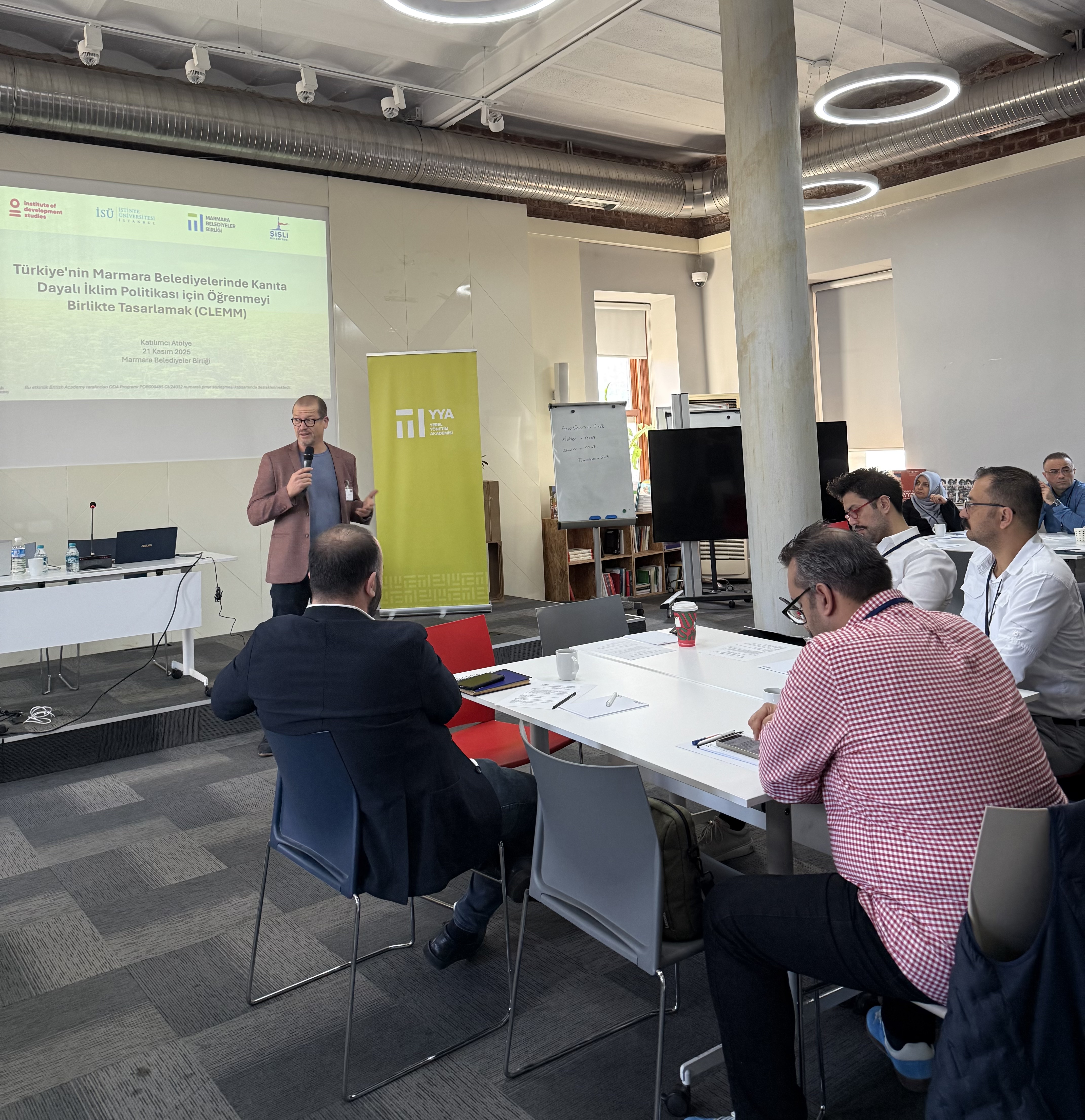 Eş-yürütücülüğünü Prof.Ayselin YILDIZ'ın yaptığı ve British Academy tarafından desteklenen "Co-designing Learning for Evidence-based Climate Policy in Marmara’s Municipalities, Türkiye” isimli projenin Katlımcı Çalıştayı 21 Kasım 2025 tarihinde Marmara Belediyeler Birliği'nde (MMB) gerçekleştirildi. Marmara bölgesindeki 17 farklı belediyeden iklim alanında çalışan temsilcilerin katıldığı çalıştayda, iklim değişikliği üzerine belediyelerin ihtiyaçları tartışıldı ve Şubat 2026'da düzenlenmesi planlanan eğitim konuları önerildi. Projenin eş yürütücüsü Institute of Development Studies’den Dr. Dolf te Lintelo, araştırmacı Roz Price, MMB Sürdürülebilirlik ve İklim Değişikliği Merkezi Direktörü & Projeler Kıdemli Uzmanı Özge Sivrikaya ve Şişli Belediyesi'nden Meryem Kayan proje ekibi olarak, çalıştay süresince grup çalışmalarını destekledi.