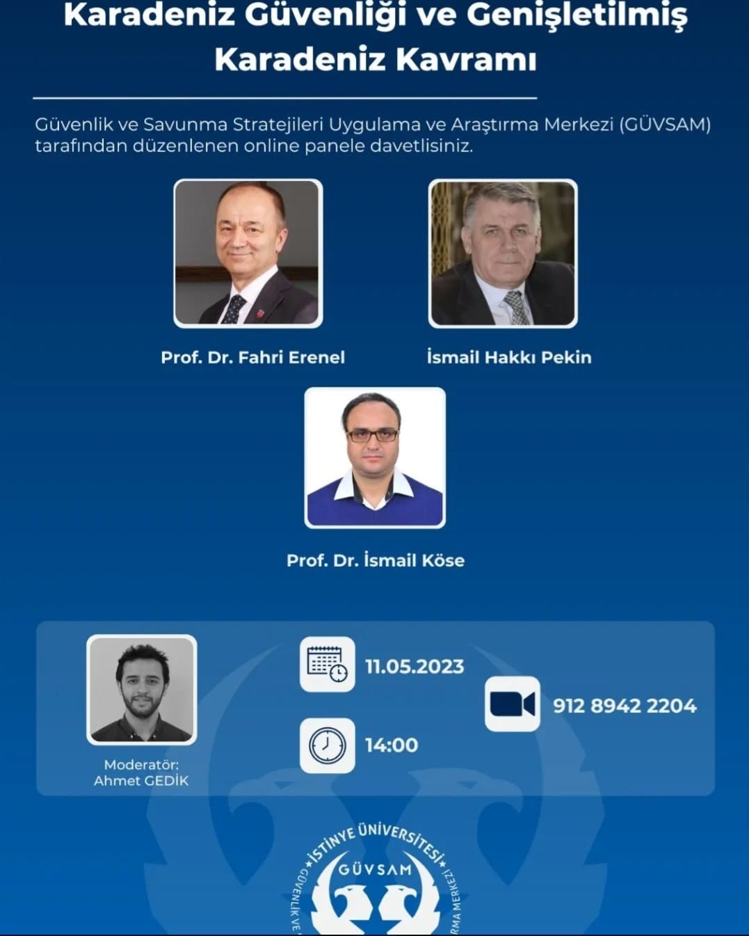 11 Mayıs Perşembe günü 14:00'da GÜVSAM tarafından düzenlenen "Karadeniz Güvenliği ve Genişletilmiş Karadeniz Kavramı" etkinlikte Rusya-Ukrayna Savaşı'nın devam ettiği günlerde Karadeniz'deki güvenlik konusu ve güncel konular ele alınmıştır.