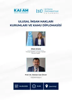 İnsan haklarının korunması ve kamu diplomasisinin geliştirilmesinde ulusal kurumların rolü nedir? Bu soruya yanıt arayacağımız etkinliğimizde, Türkiye Eşitlik ve İnsan Hakları Kurulu Üyesi Dilek Ertürk ve İstinye Üniversitesi Kamu Diplomasisi ve Araştırma Merkezi (KADAM) Müdürü Prof. Dr. Osman Can bizlerle olacak.
