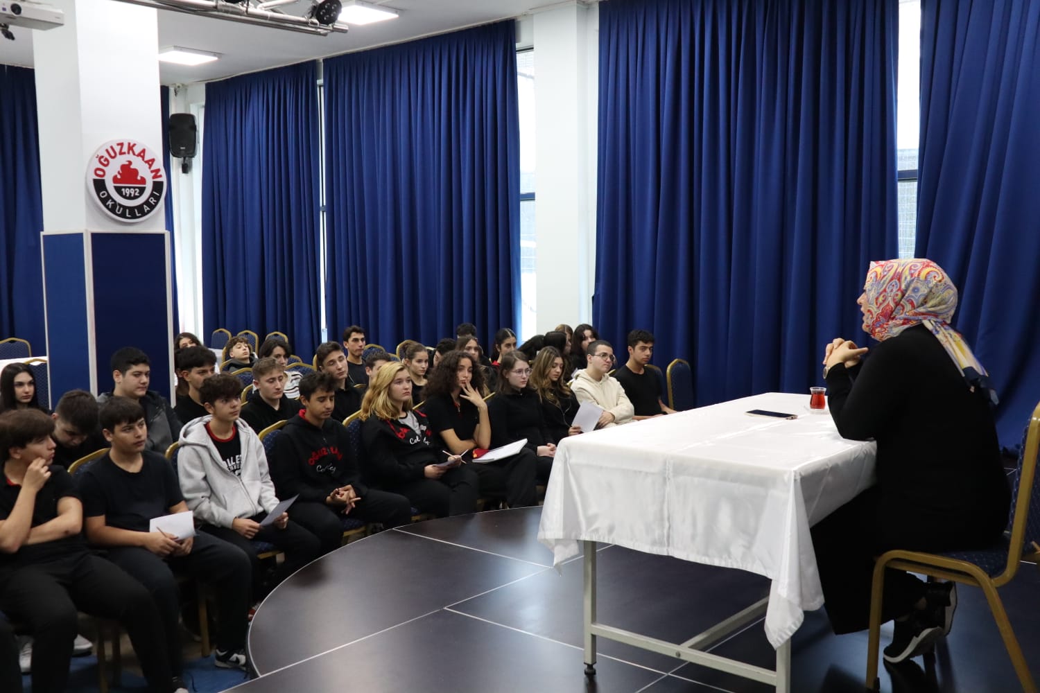 Bölüm hocalarımızdan Dr. Öğr. Üy. Yasemin Torun, Oğuzkaan Koleji'nde 11. ve 12. sınıf öğrencileri ile uluslararası ticaret eğitimini, mesleği ve kariyer fırsatlarını içeren konuşması ile buluştu.