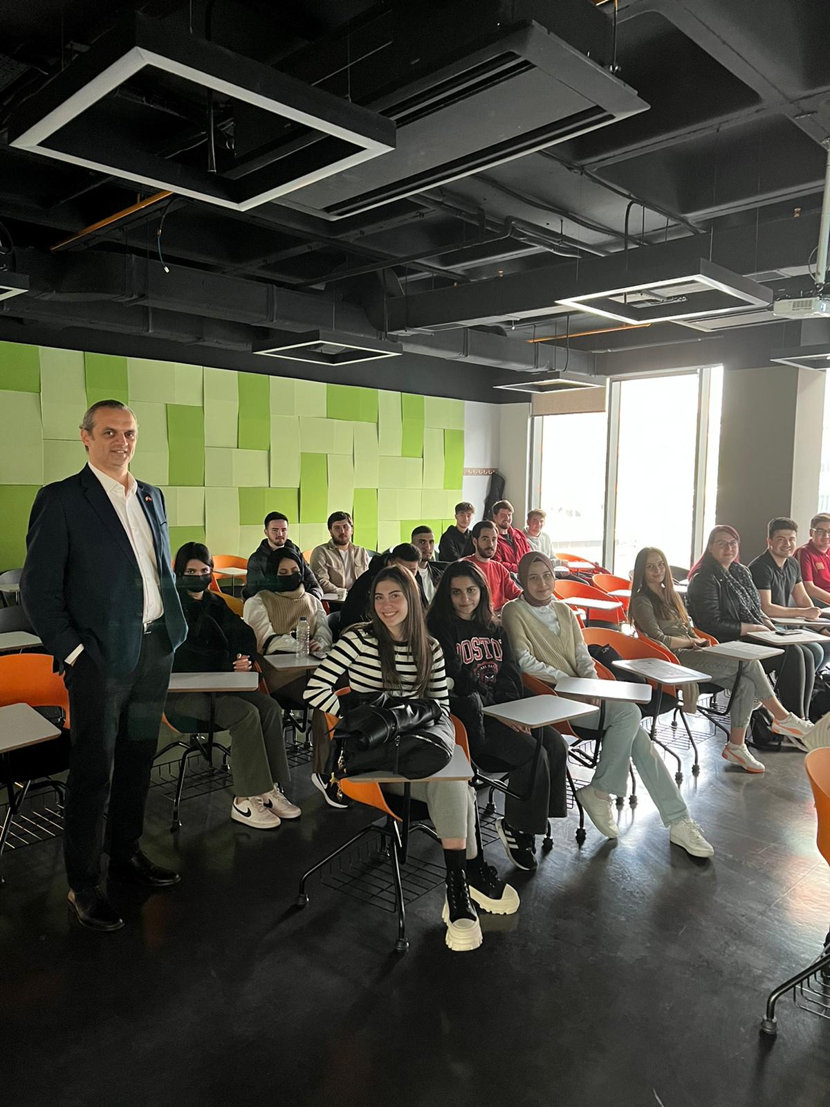 Sektör profesyoneller ile ders programımız kapsamında DHL Lojistik'in Saha Satış Müdürü Taylan Obuz'u ağırladık. Obuz öğrencilerimize "Incoterms in International Trade" başlıklı bir sunum yaparak sektöre dair deneyim ve gözlemlerini hem teorik hem de pratik çerçevede anlattı.