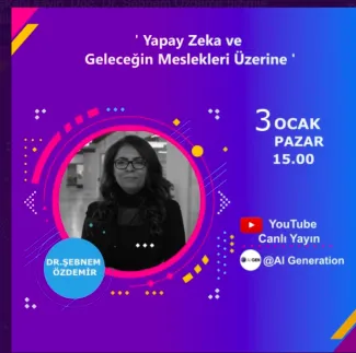 AIEGEN Topluluğu Youtube kanalı üzerinden gerçekleştirilen yayında bölüm başkanımız Şebnem Özdemir, yapay zeka ve geleceğin meslekleri üzerine bir konuşma gerçekleştirmiştir.