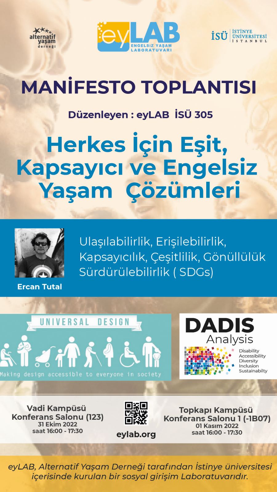 İstinye Üniversitesi ve Alternatif Yaşam Derneği iş birliği ile oluşturulan Engelsiz Yaşam Laboratuvarı tarafından düzenlenen "Herkes İçin Eşit, Kapsayıcı ve Engelsiz Yaşam Çözümleri" başlıklı seminere davetlisiniz.