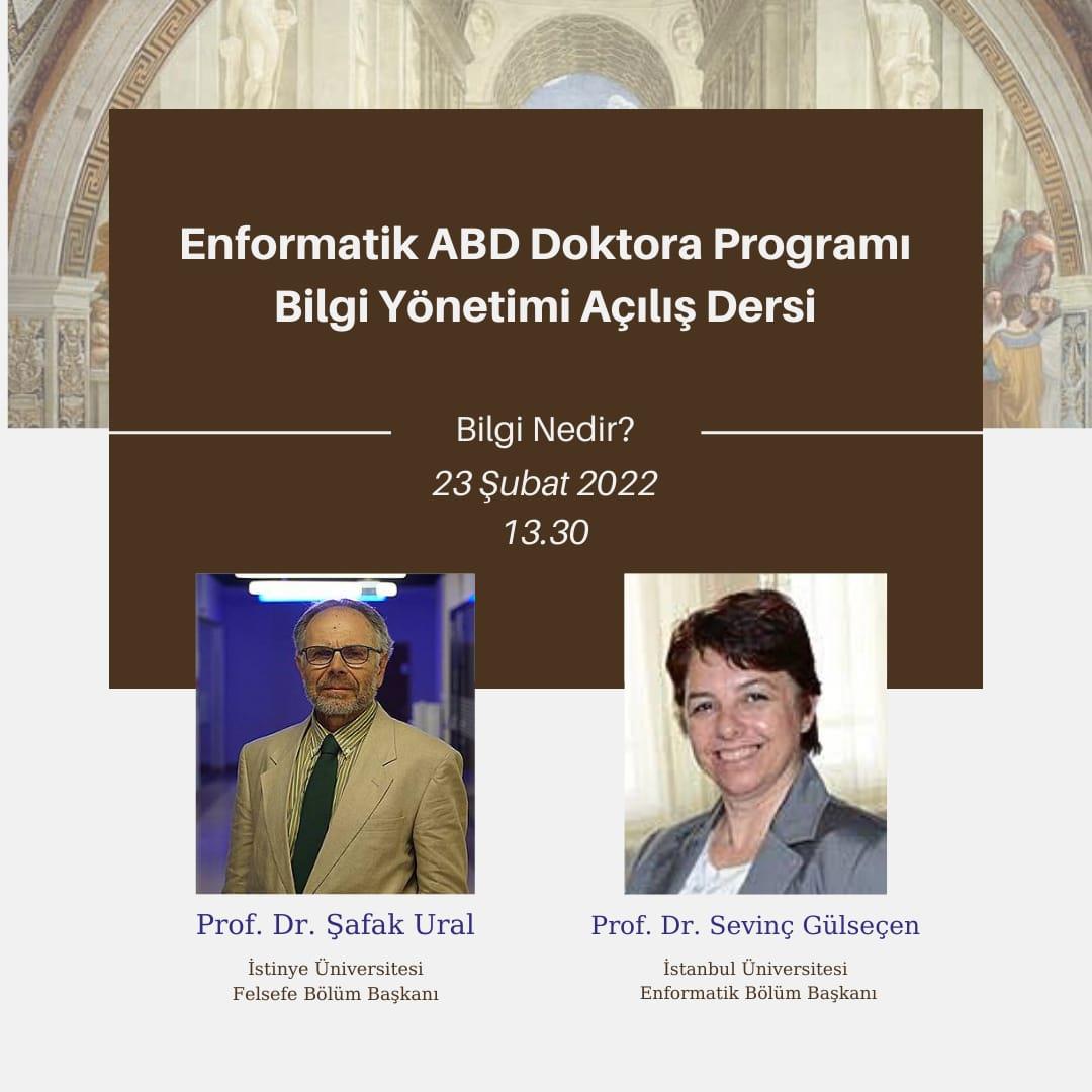 İstanbul Üniversitesinde Enformatik Ana Bilim Dalı Doktora Programı açılışı için, 23 Şubat 2022 tarihinde düzenlenen açılış derslerinde İstinye Üniversitesi Felsefe Bölüm Başkanı Prof. Dr. Hayri Şafak URAL "Bilgi Nedir?" başlıklı dersini verdi. Bilginin kökenleri, tarihsel dönüşümü ve çeşitlerinin anlatıldığı bu ders ile enformatik alanına temel bir giriş yapıldı.