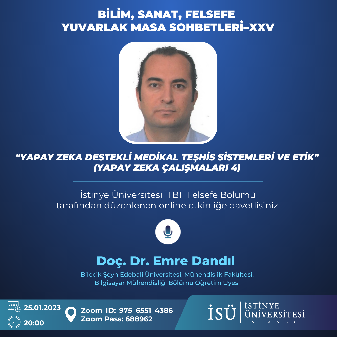 Bilim, sanat ve felsefe temalı Yuvarlak Masa Sohbetleri'nin yirmi beşinci konuğu, Bilecik Şeyh Edebali Üniversitesi Mühendislik Fakültesi Bilgisayar Mühendisliği Bölümünden Doç. Dr. Emre Dandıl oldu.