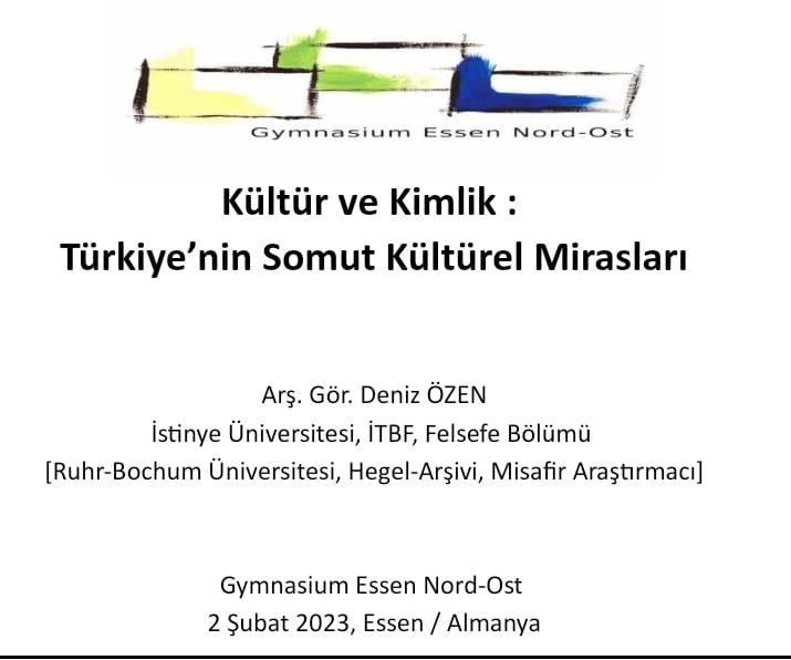 Felsefe Bölümü Araştırma Görevlisi Deniz Özen, Gymnasium Essen North-Ost'ta, "Kültür ve Kimlik: Türkiye'nin Somut Kültürel Mirasları" başlıklı bir sunum yaptı.