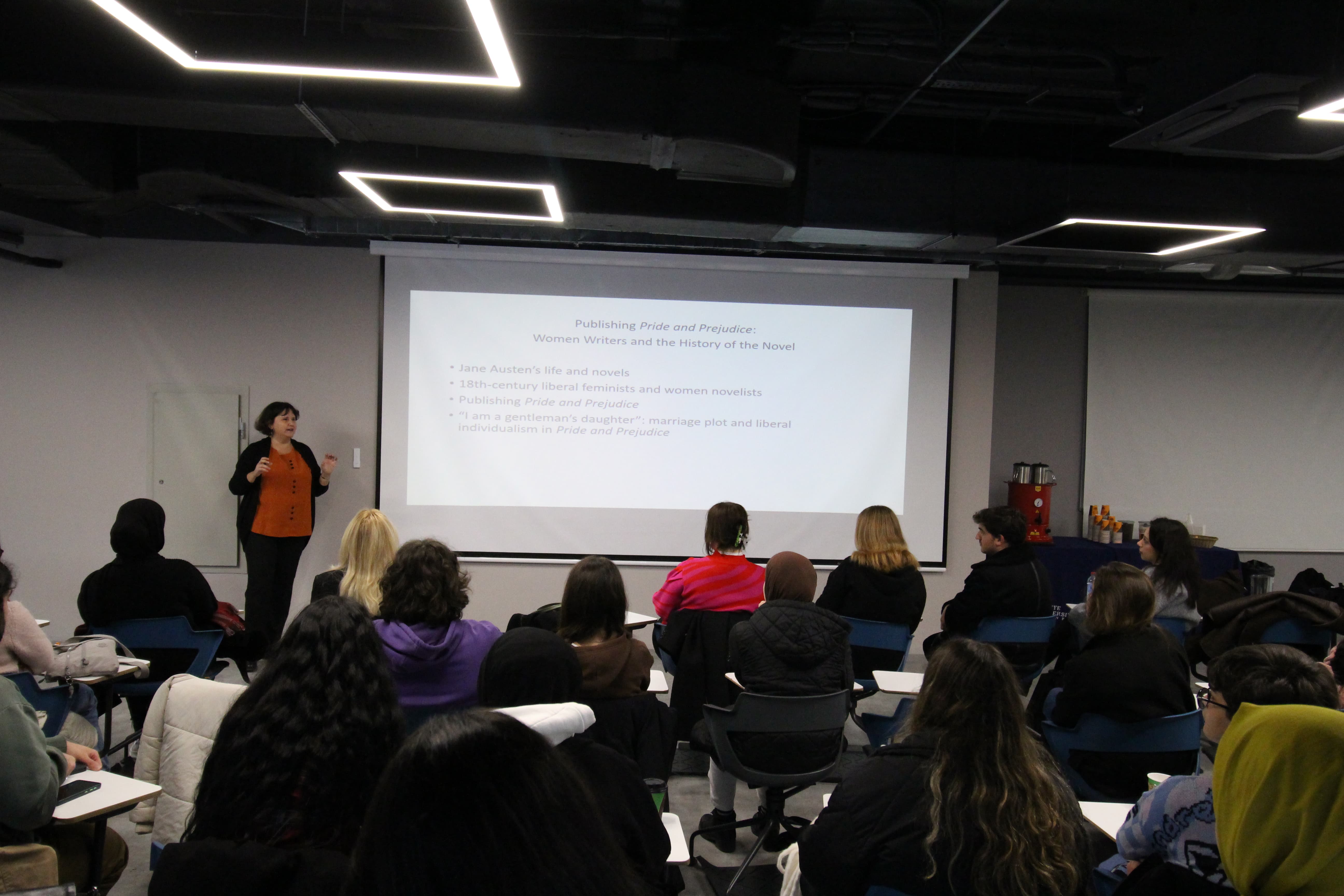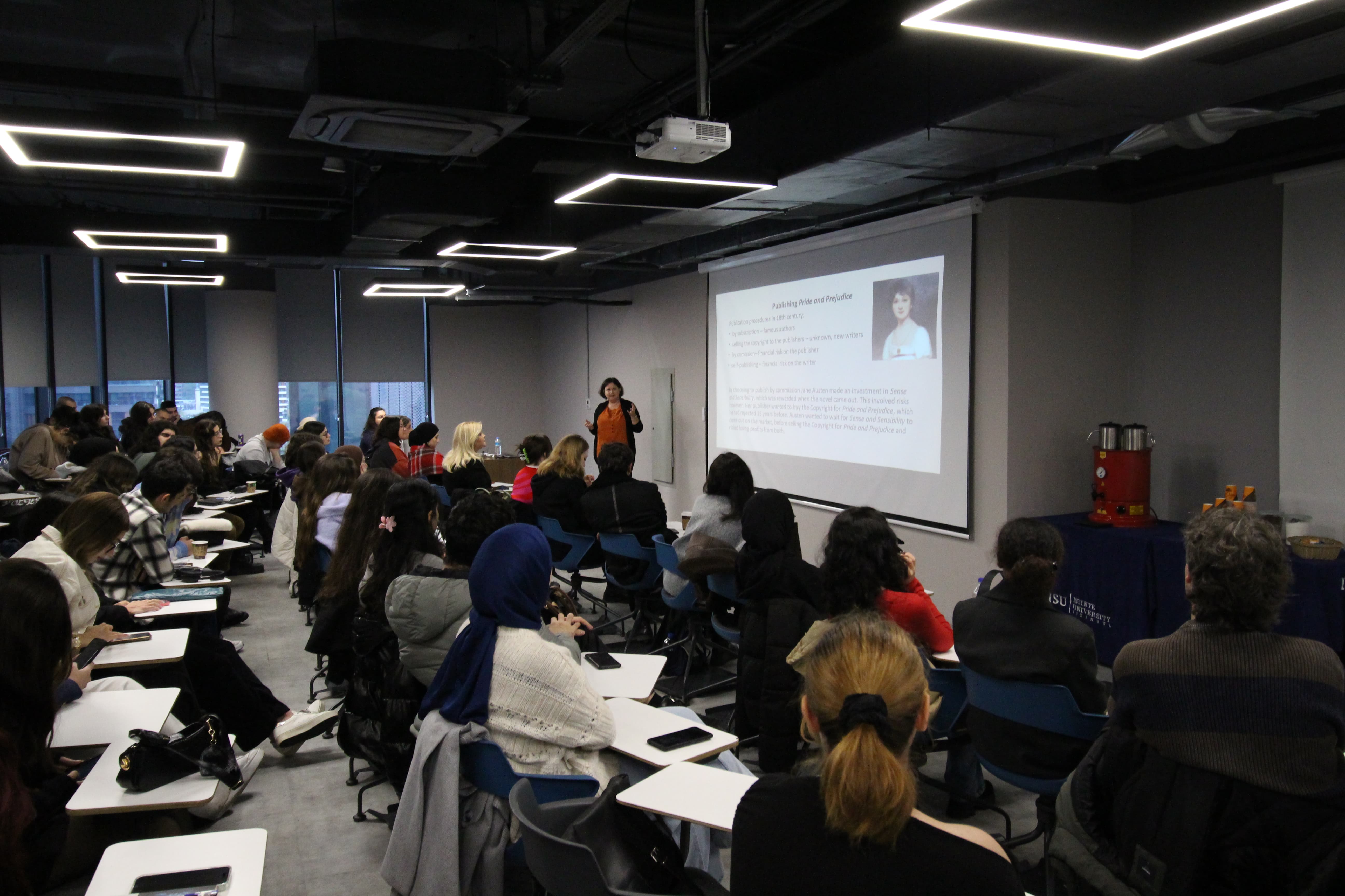 İngiliz Dili ve Edebiyatı Bölümünün düzenlediği "Edebiyat Seminerleri" kapsamında 3 Aralık 2024 tarihinde AB Blok Vadi Kampüste gerçekleştirilen etkinlikte Boğaziçi Üniversitesi Batı Dilleri ve Edebiyatları Bölümü Dr. Öğr. Üyesi Başak Demirhan "<em>Gurur ve Önyargı</em> 'nın Basımı: Kadın Yazarlar ve Romanın Tarihi" isimli konuşmasını gerçekleştirdi. Konuşma sonrası öğrencilerin soruları cevaplandı. Etkinliğe öğrenciler yoğun ilgi gösterdiler.